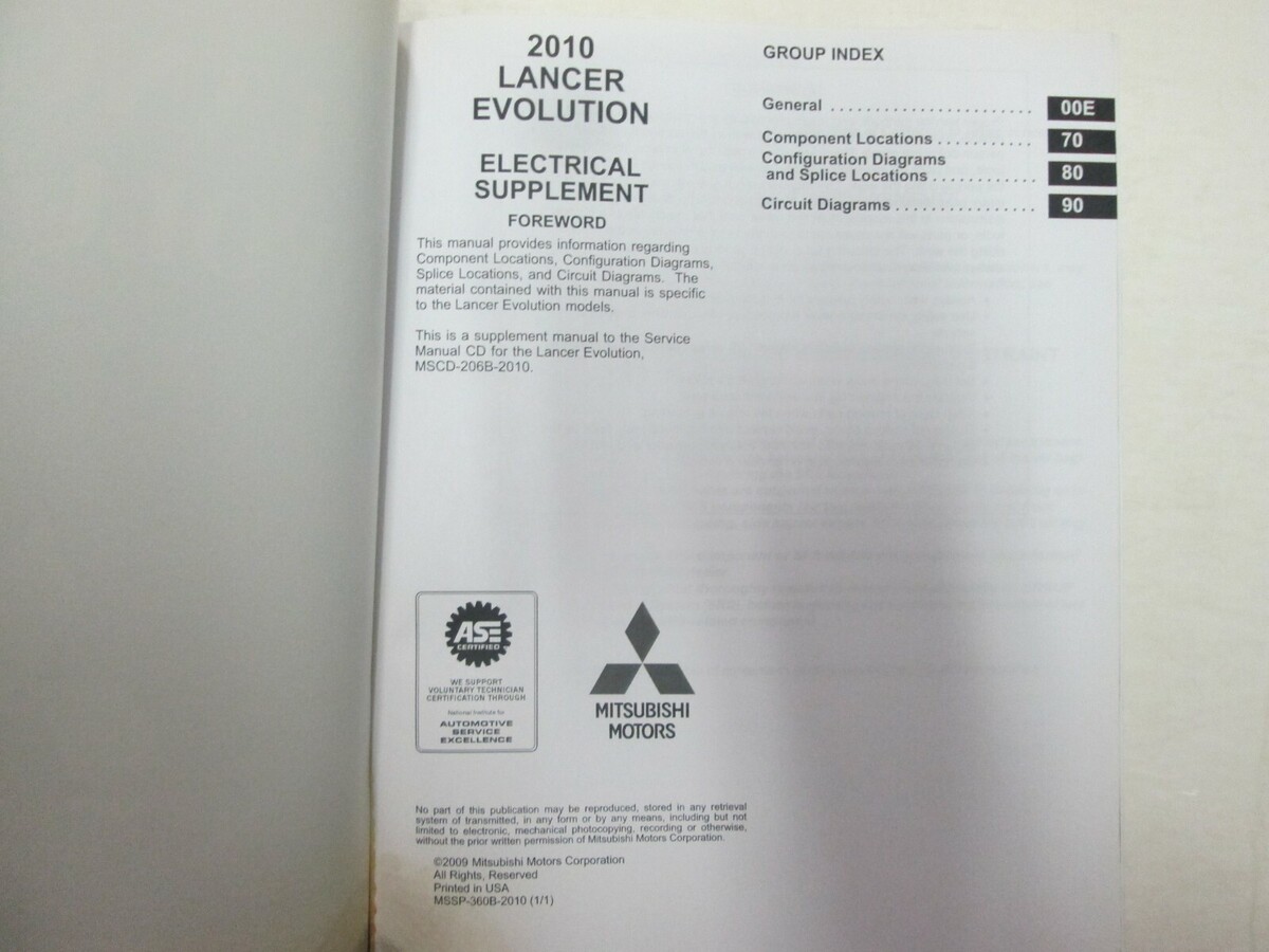 Manuale del supplemento elettrico Mitsubishi Lancer Evolution 2010