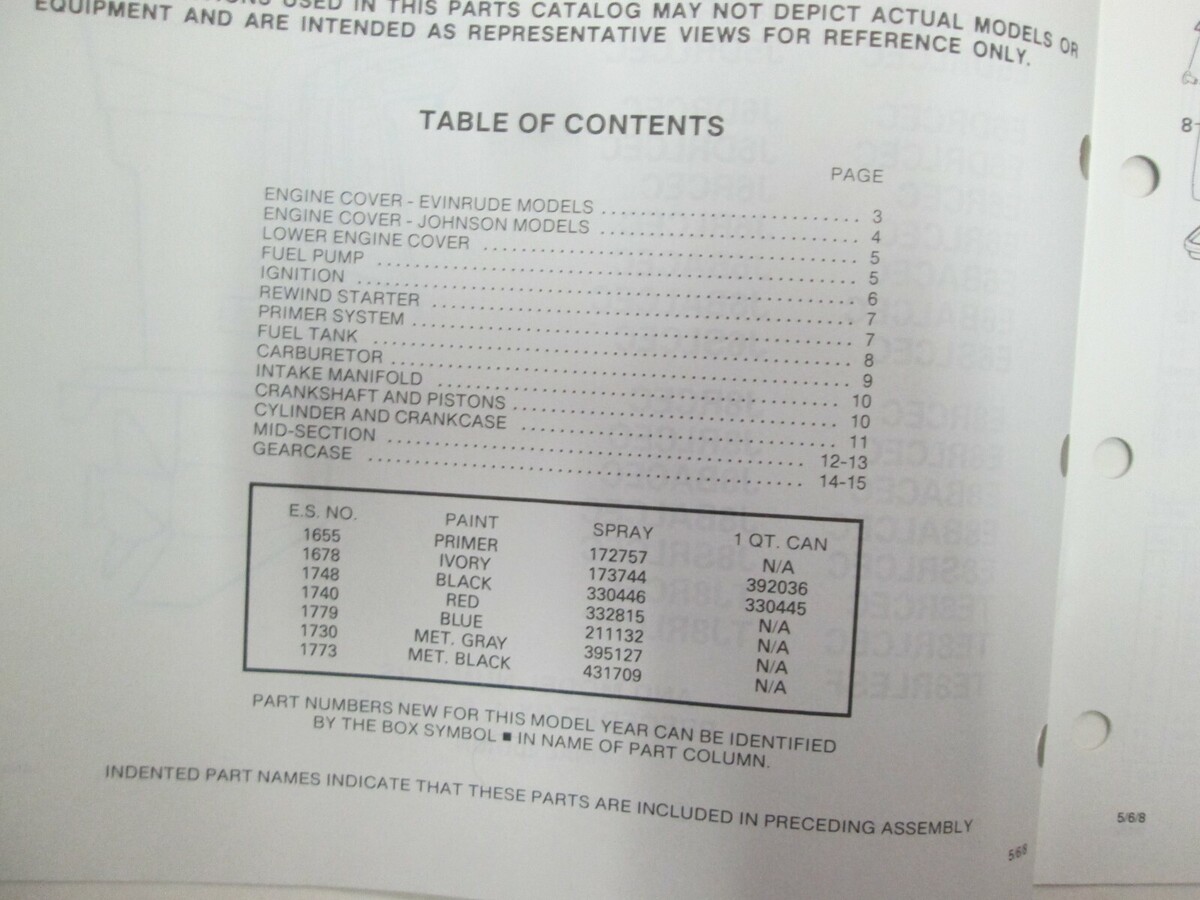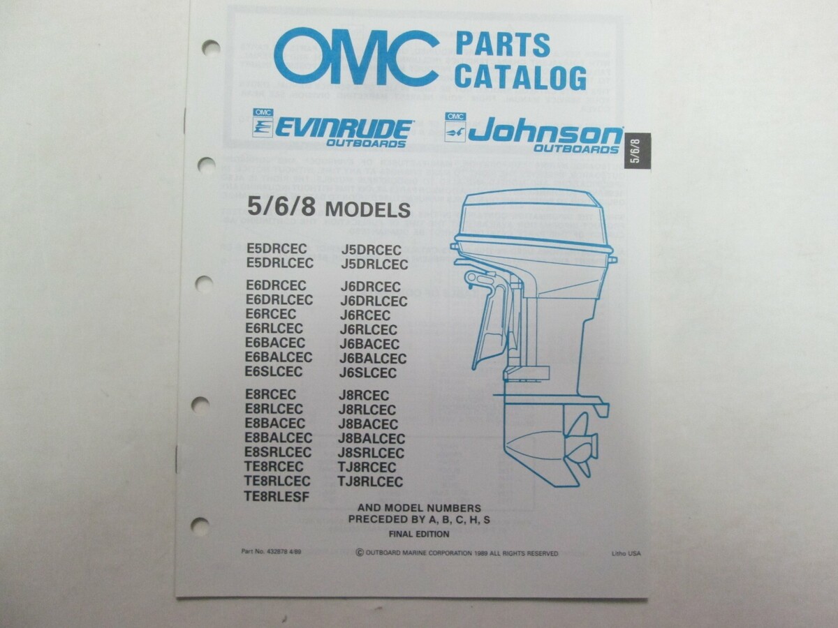 Catalogo Manuale Parti Modelli 5 6 8 OMC Johnson Evinrude Fuoribordo 1990 432878