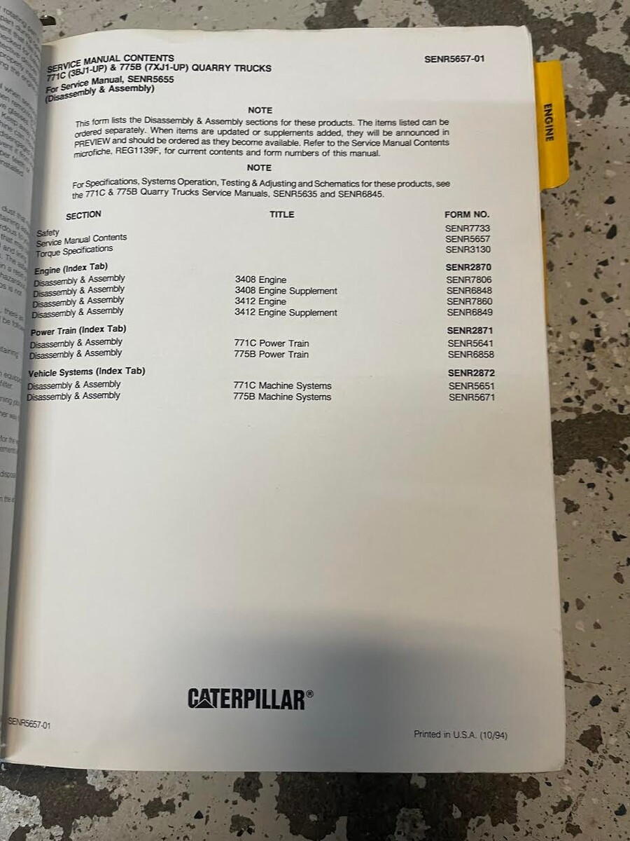 Cat Caterpillar 771C 775B Servizio di riparazione Manuale 3BJ1-UP 7XJ1-UP OEM