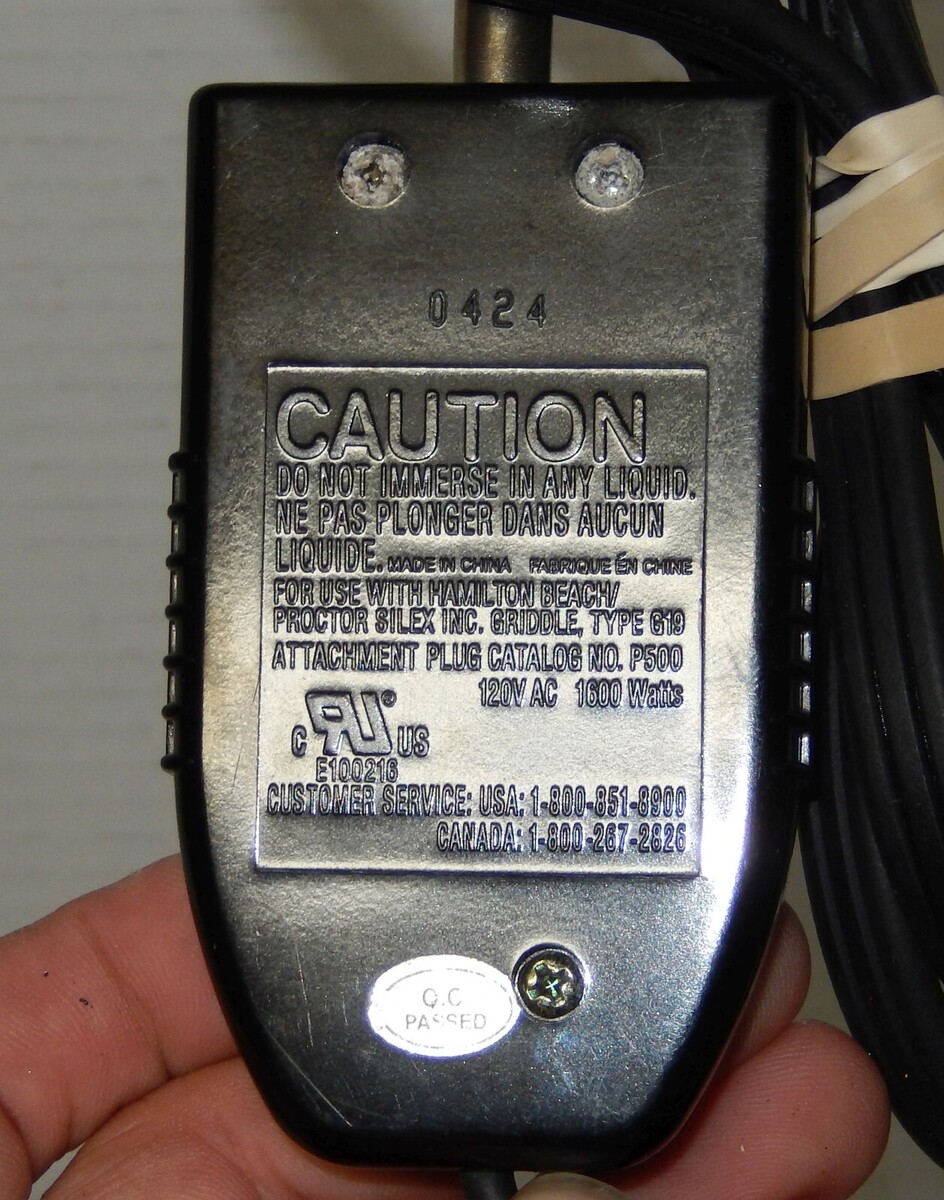 For sale is a Hamilton Beach Temperature Temp Control P500 Cord/Plug/Probe/Prong Tested WORKS. Its in Good Used condition. Tested and Works. please view all the pictures provided. ask any and all questions prior to purchasing. Fast same or next day shipping with delivery confirmation.