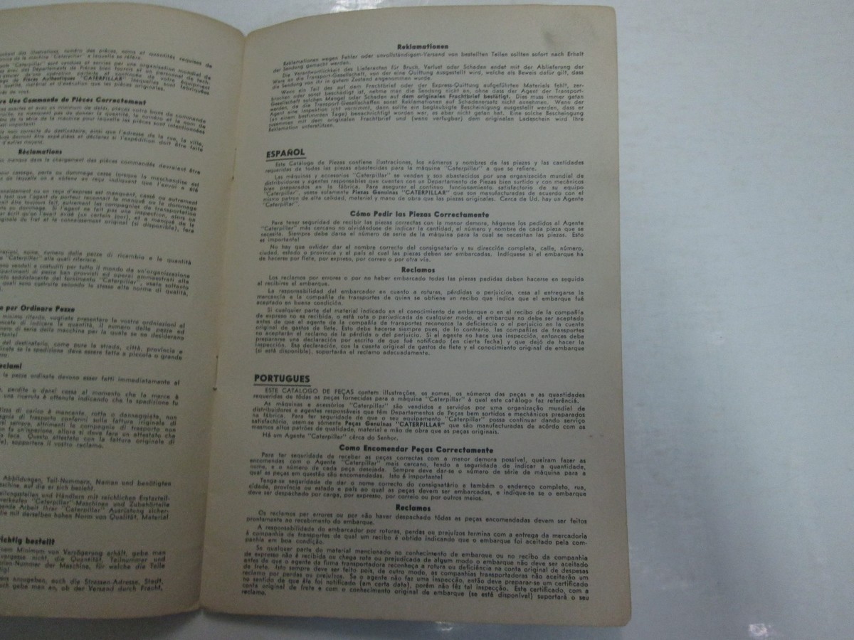 Caterpillar Nr. 7A Bulldozer -Angel -Klingen -Teile Katalog Handbuch beschadigt