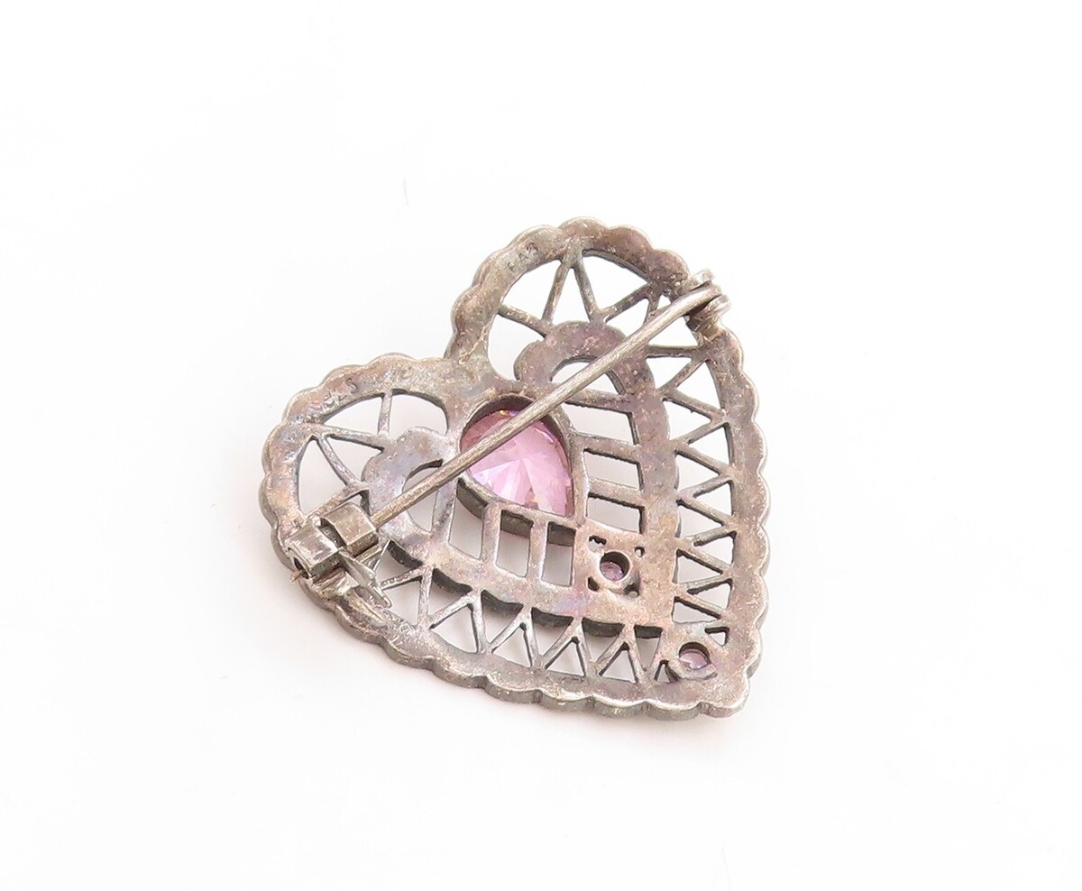 925 Sterling Silver Vintage Brooch Pin Dark Tone Designer Cut CZ Heart BP11420