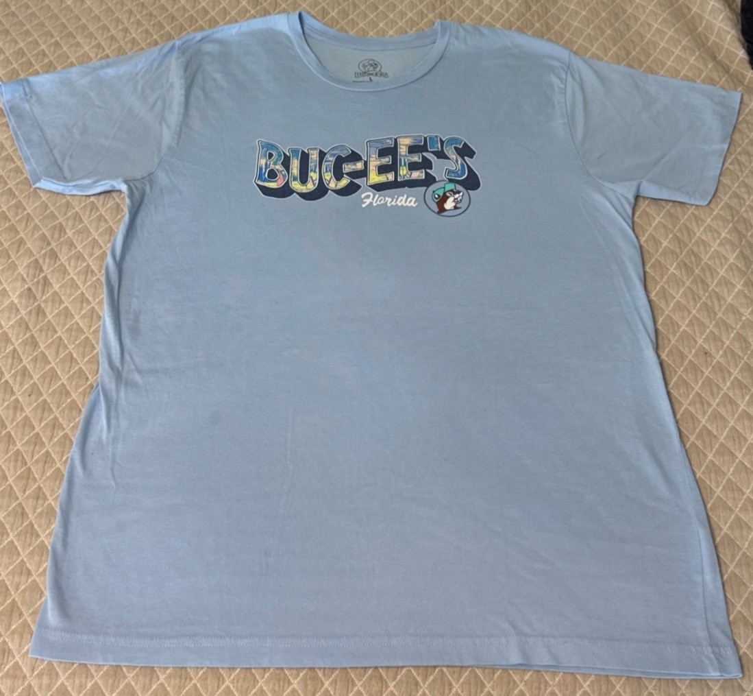 Buc-ee's Light Blue 100% Cotton Graphic T-Shirt Buc-ee the Beaver Florida Size L