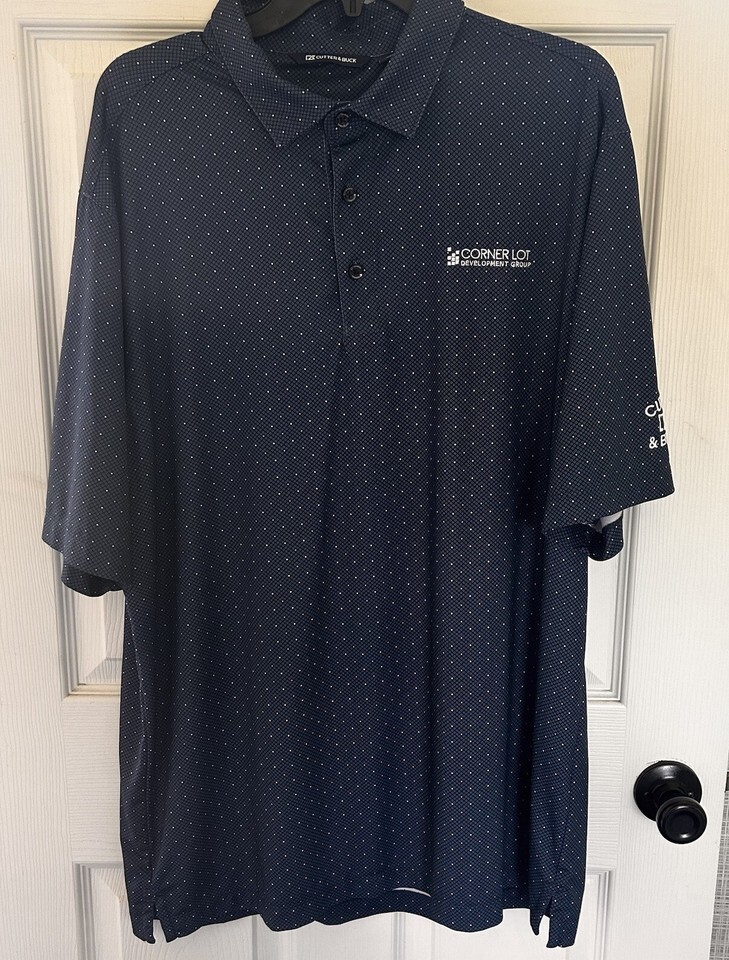 Cutter & Buck Golf Polo Shirt Men's Large Blue Stretch Golf Corner Dev Logo BxQ