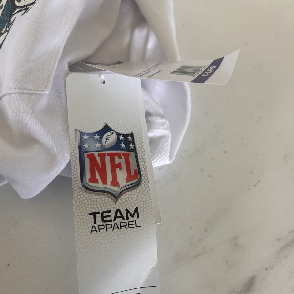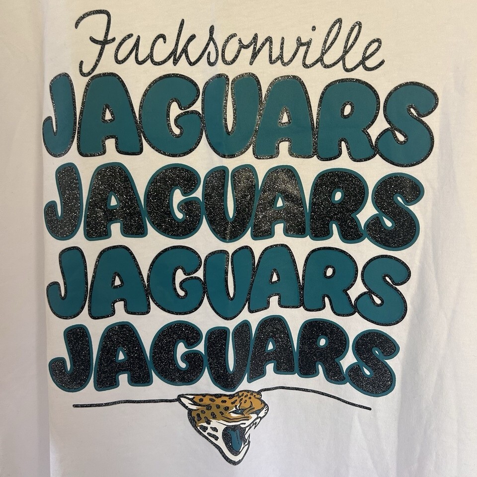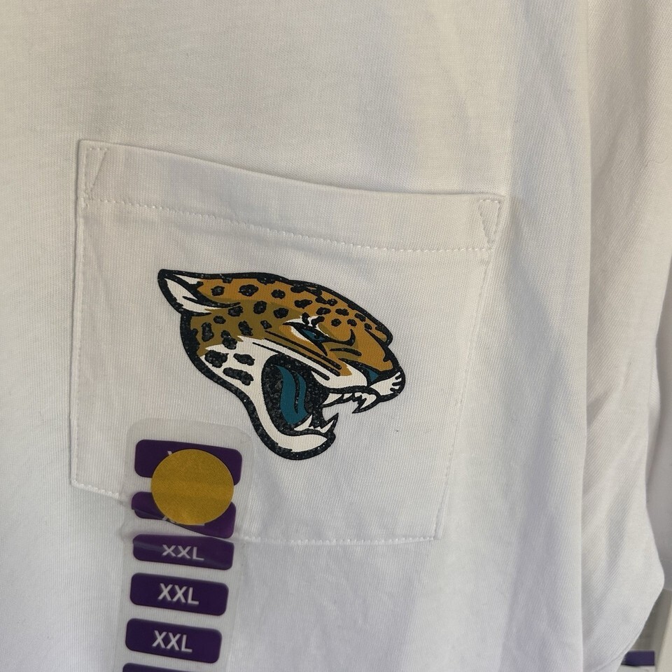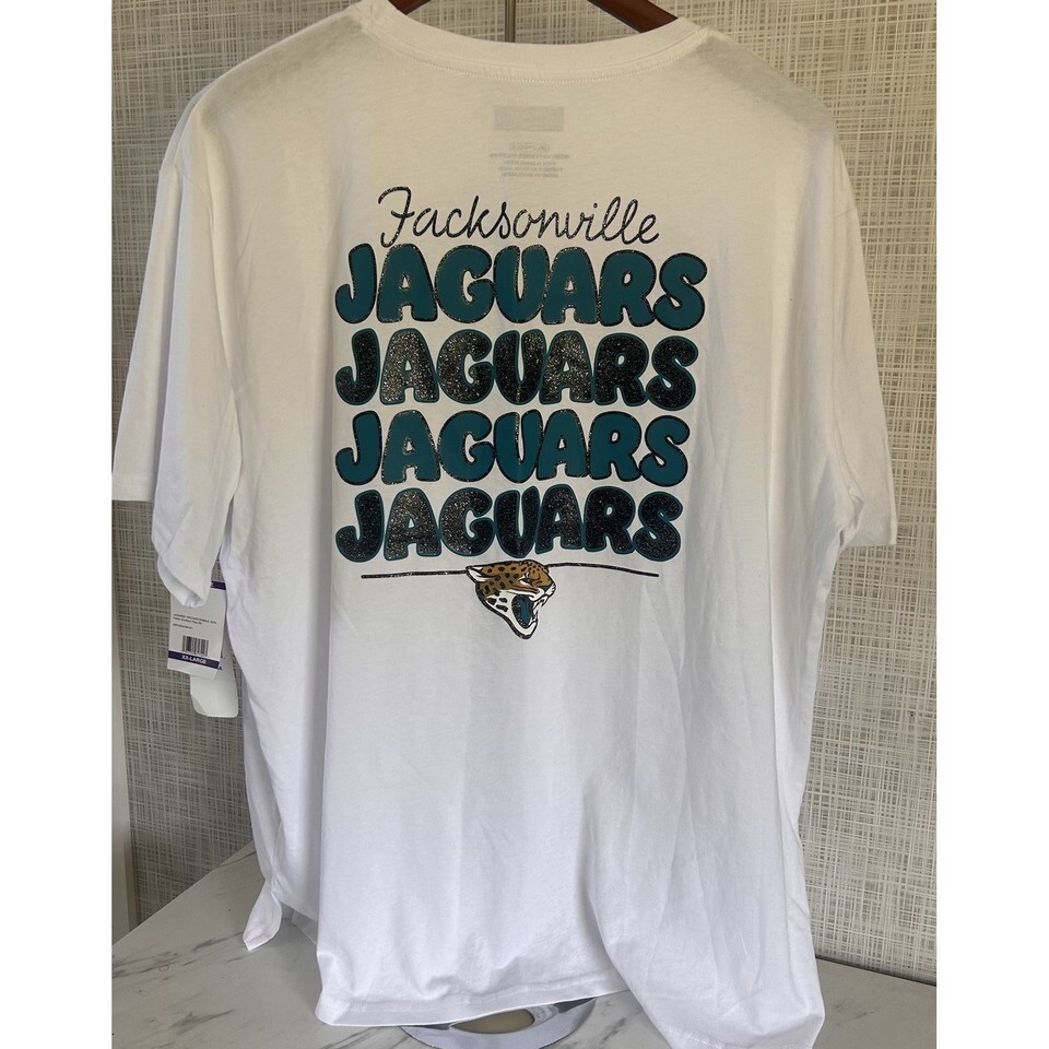 Jacksonville Jaguars T-Shirt, XXL, women's, white, short sleeves. NFL Team Apparel 100% Cotton. Side 2' slits. Very nice shirt.