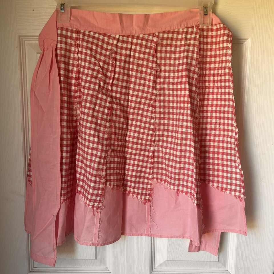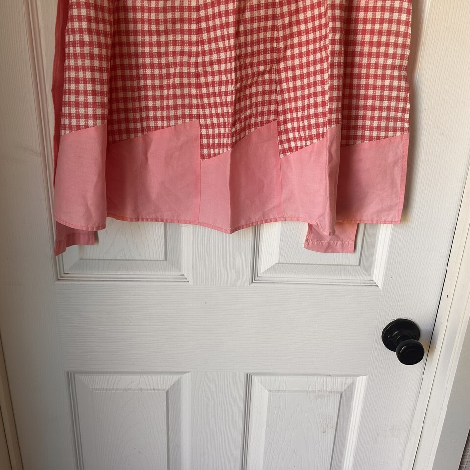 Vintage Handmade Cotton Pink Gingham Check Half Apron Pink & White Diner BxQ