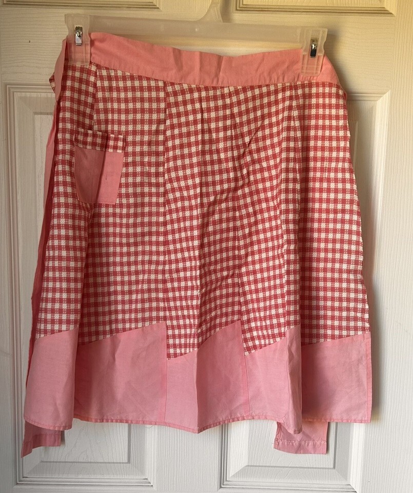 Pink gingham half apron. Handmade. 17" across from of apron band. 21" in length.