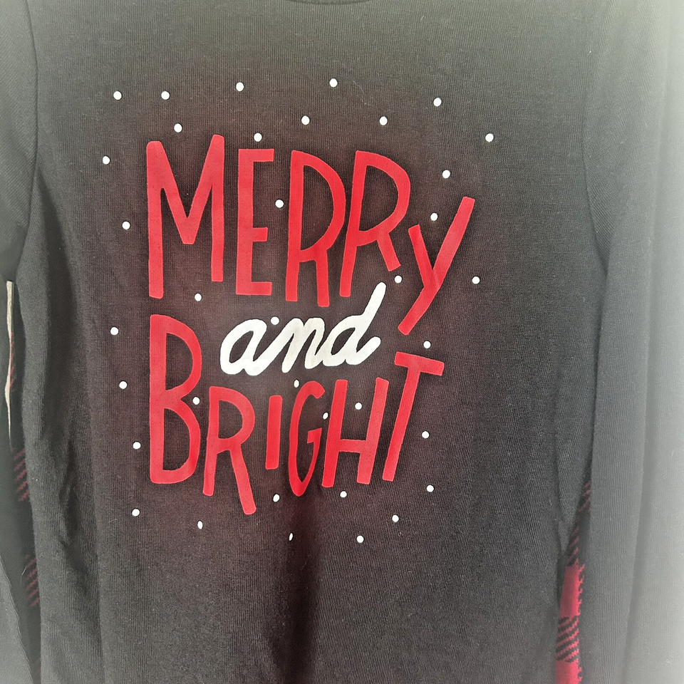 Christmas Pajamas Kids Unisex 4/5 Holiday Jammies For Your Families Plaid New! Flame resistant. Plaid pants, black solid top with Merry and Bright logo.