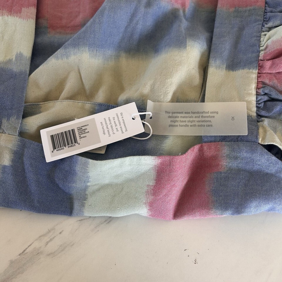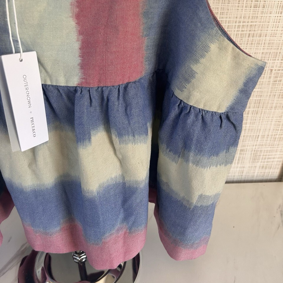 Outerknown Astrid Top Blue Pink Striped Swing Organic Cotton Women's Large BxEE