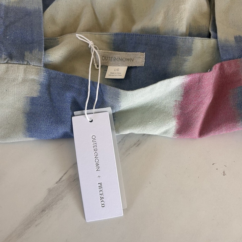 Outerknown Astrid Top Blue Pink Striped Swing Organic Cotton Women's Large, new, with tags.