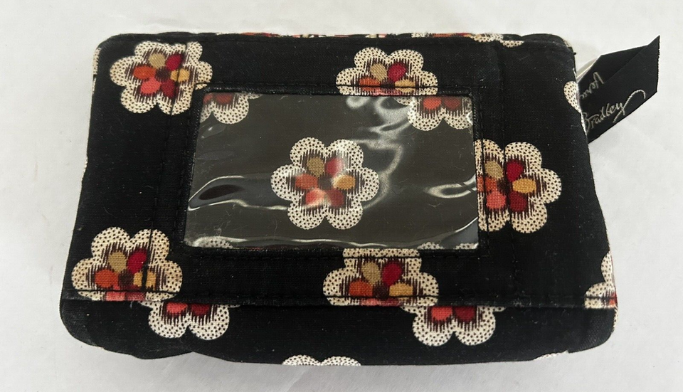Vera Bradley Pirouette Small Wallet Black Red Orange Flowers Floral 5" X 3.5"