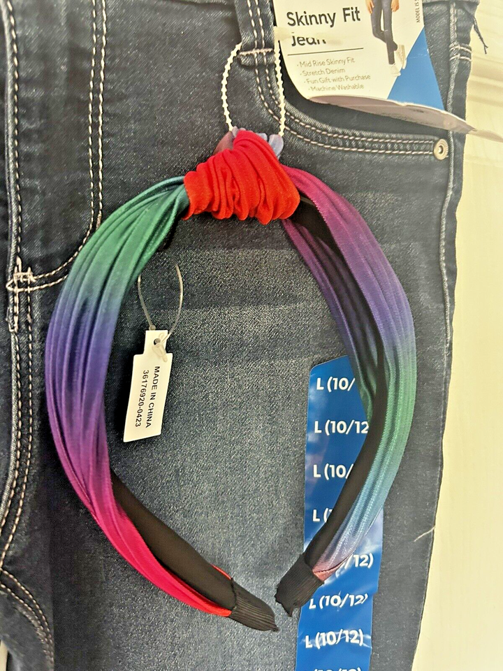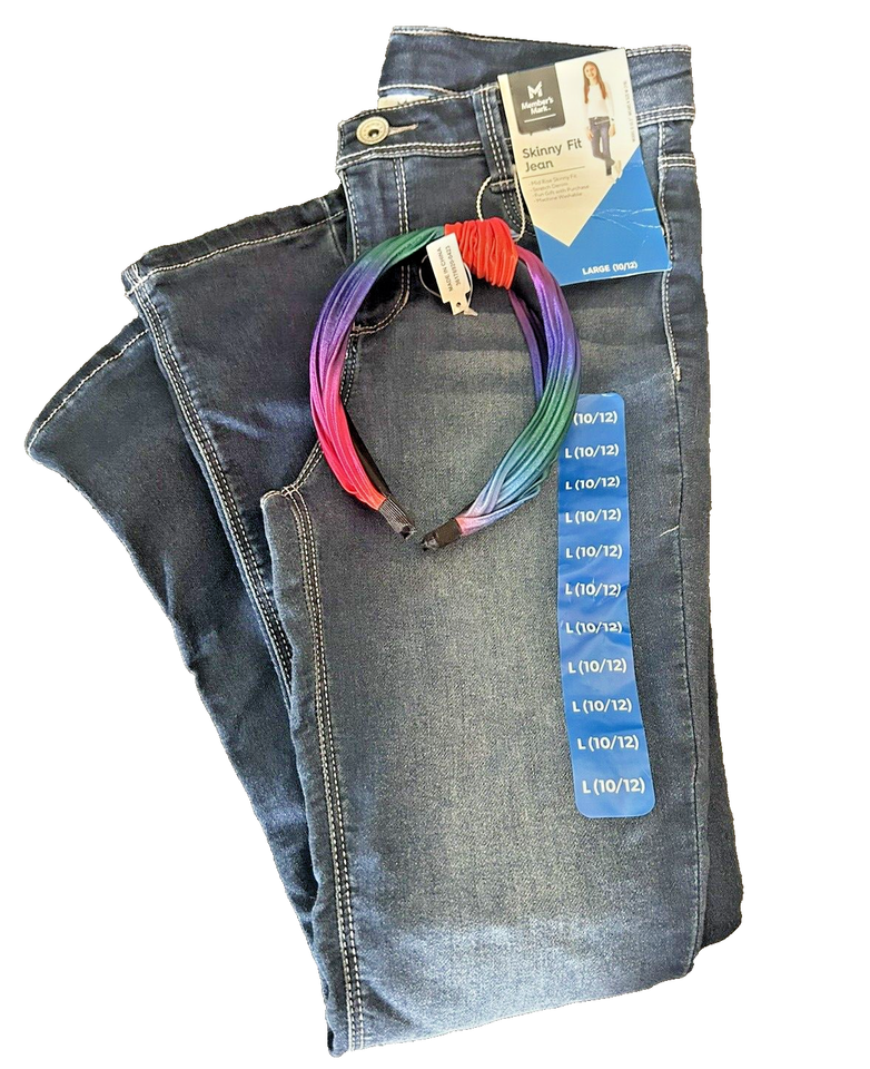 Girls Skinny Fit Jean Size Large 10/12 Denim & Matching Headband Members Mark