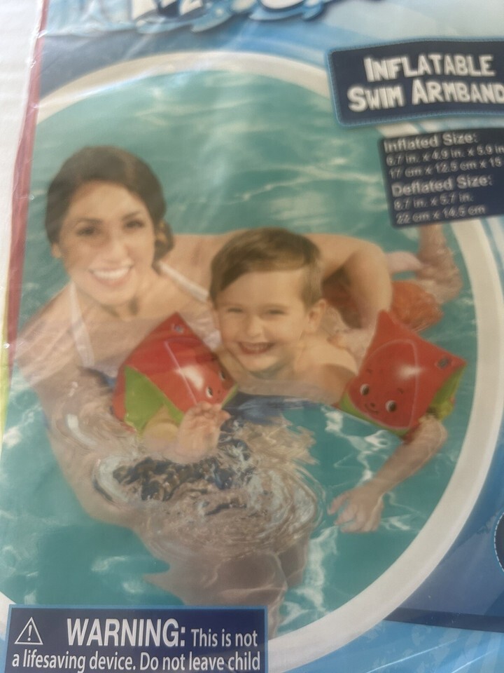 Enjoy your time in the water with these fun and practical armband floats. Designed with a delightful watermelon pattern, these inflatable bands are perfect for swimming and other water sports. They are made by Bestway, a trusted brand in the industry, and are brand new, never used. These armband floats are easy to use and provide a secure fit, allowing you to focus on having fun in the water. They are made in China and come in a lot of 2, making them perfect for sharing with a friend or family member. Don't miss out on this great opportunity to enhance your water experience! Ages 3 to 6.