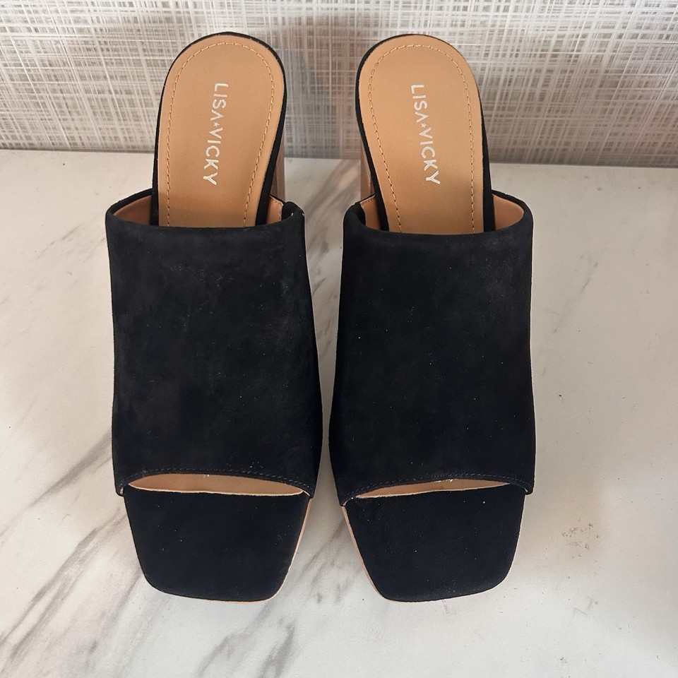 Lisa Vicky Virtue - V Black Kid Suede Mules. Women's 7.5 Medium. Gorgeous Shoe! New, in box.