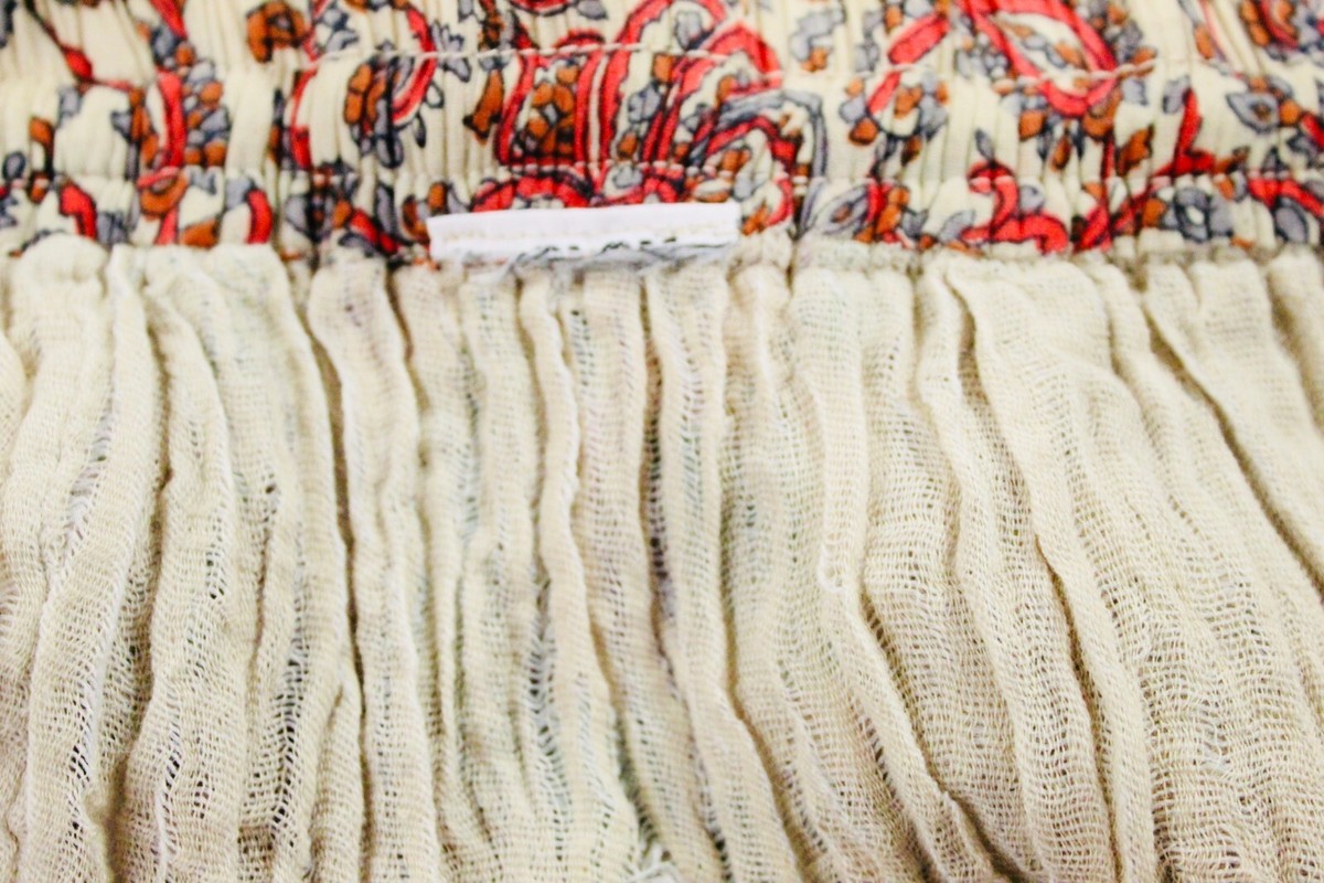 Patchwork skirts were a staple of 1970s?80s bohemian style, blending handmade heritage aesthetics with practical comfort. This piece reflects that ongoing tradition, pairing muted earthy tones with a versatile adjustable fit.