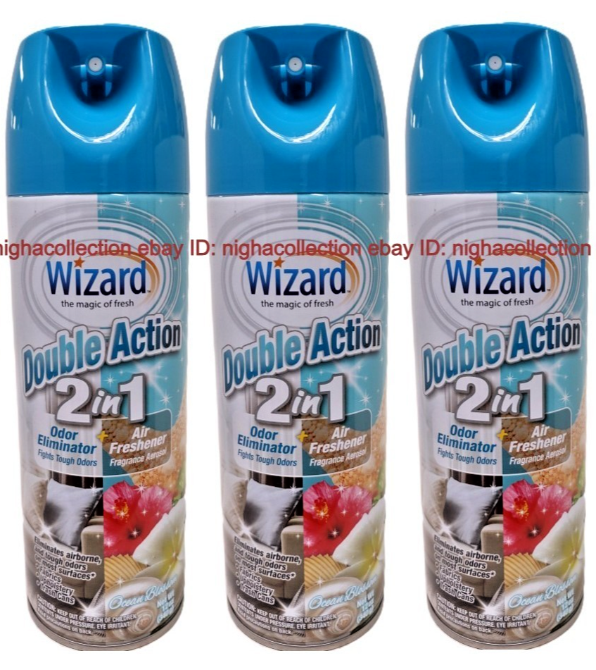 ( LOT 3 ) Wizard Air Freshener Spray 2-in-1 Double Action OCEAN BLOSSOM Odor Neutralizer 12 oz Each