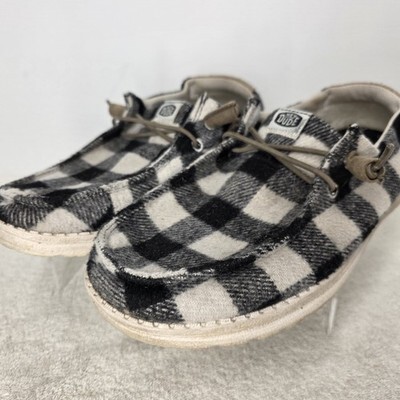 Hey Dude Wendy Buffalo Plaid Black Brown Slip On Shoes Women?s Size 8