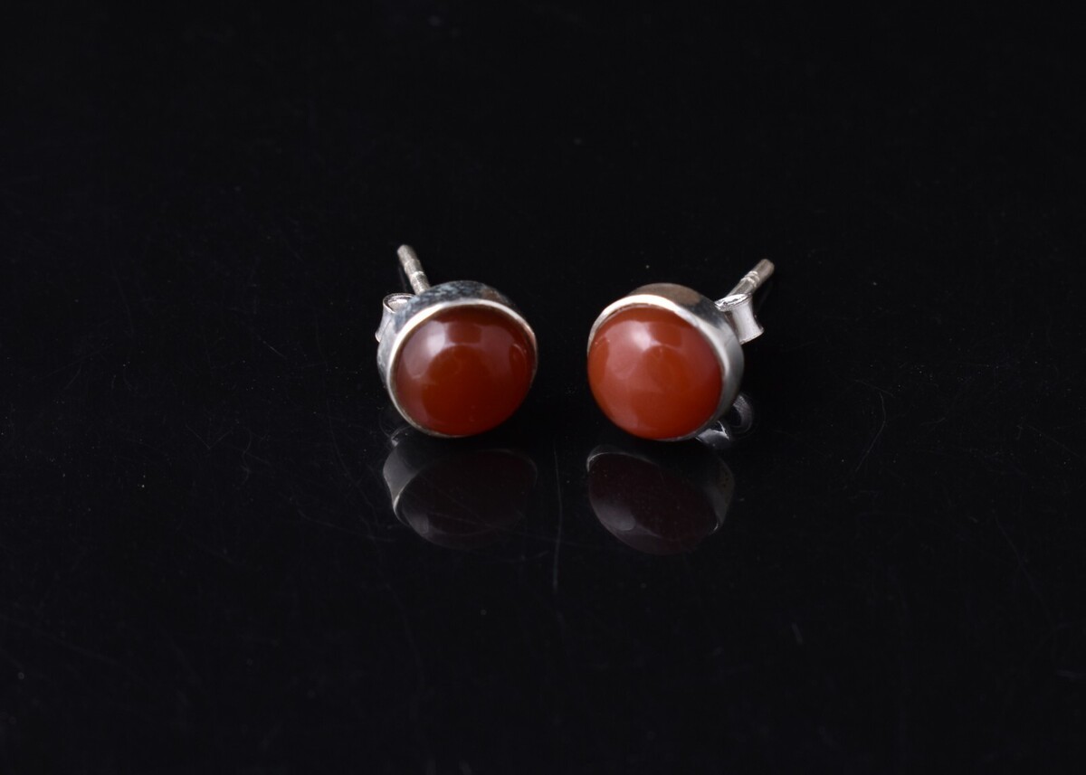 925 Sterling Silver Genuine Carnelian Handmade Stud Earrings Women Gift ES-1088