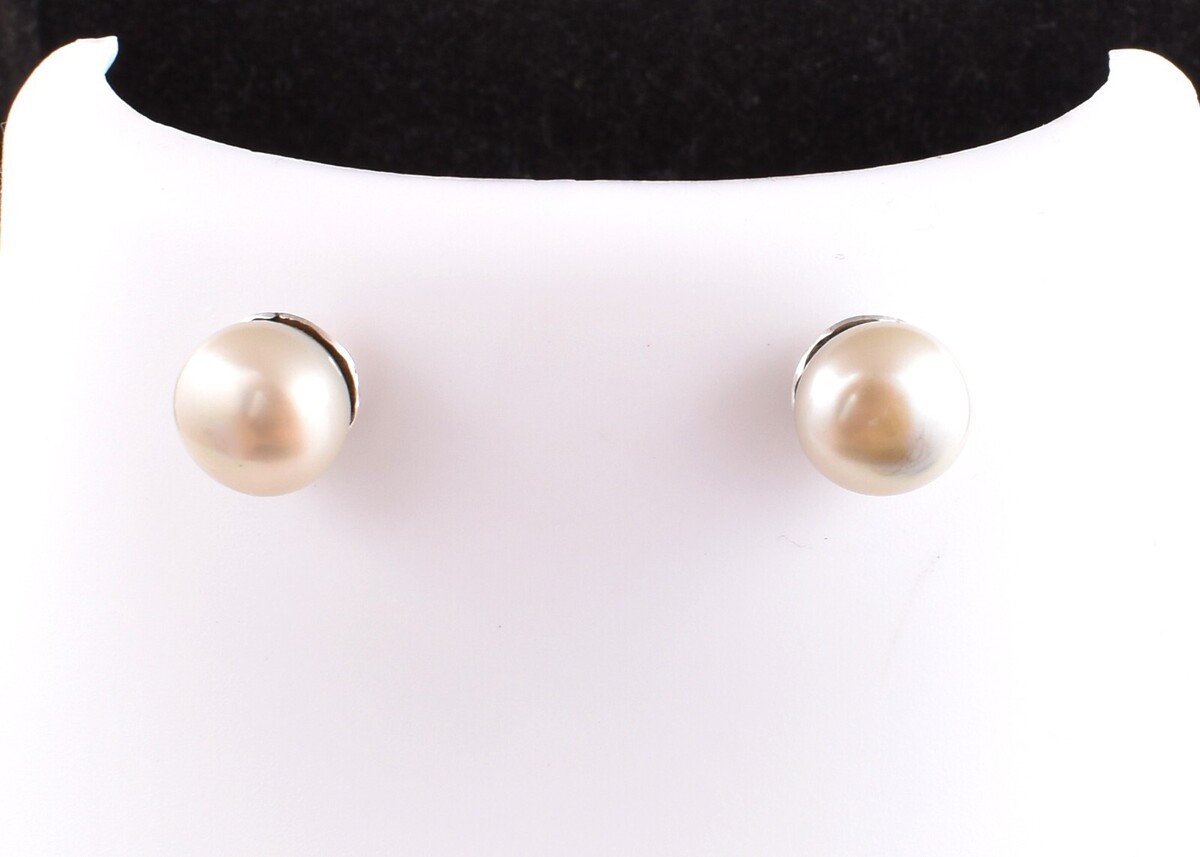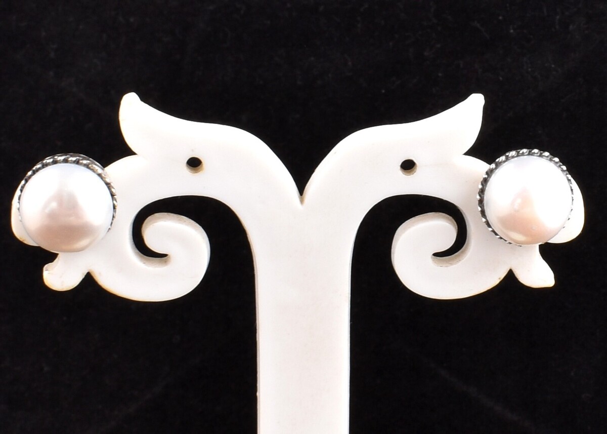 Orecchini a perno in argento sterling 925 fatti a mano con perle bianche ES-1571