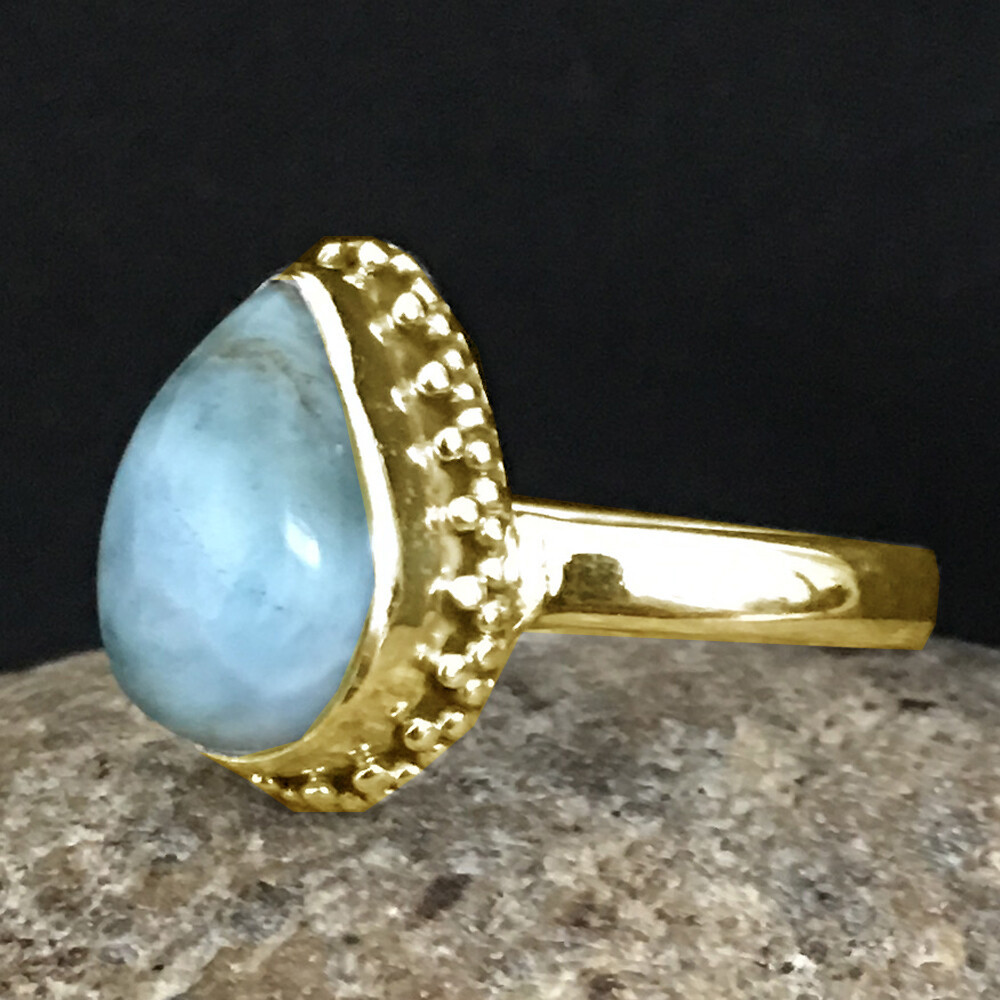 925 Sterling Silver Larimar Gemstone Rose Gold/Gold Plated Wedding Ring GRS-1239