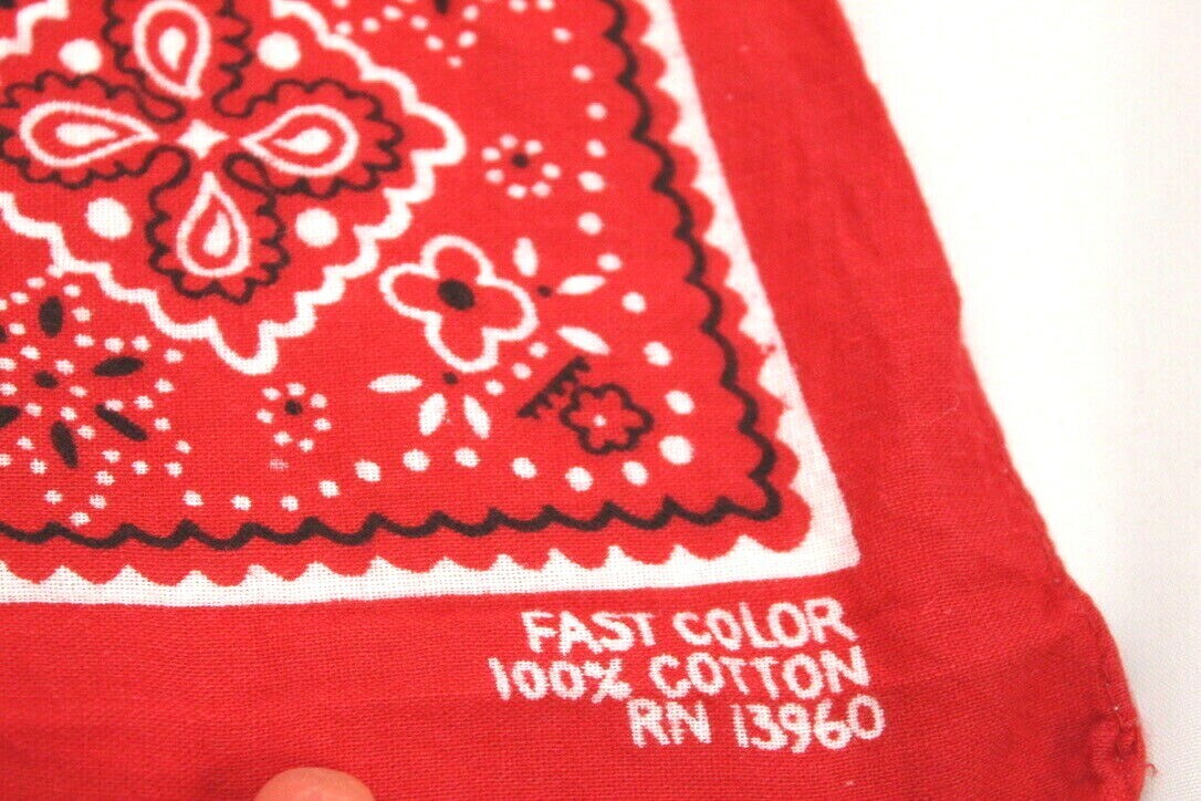Vintage Red Bandana, stamped 13960 and colorfast, 20" square, Excellent Condition