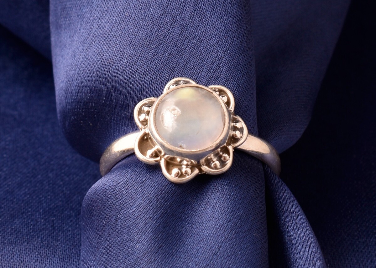 Anello tondo fatto a mano in argento sterling 925 con pietra arcobaleno...