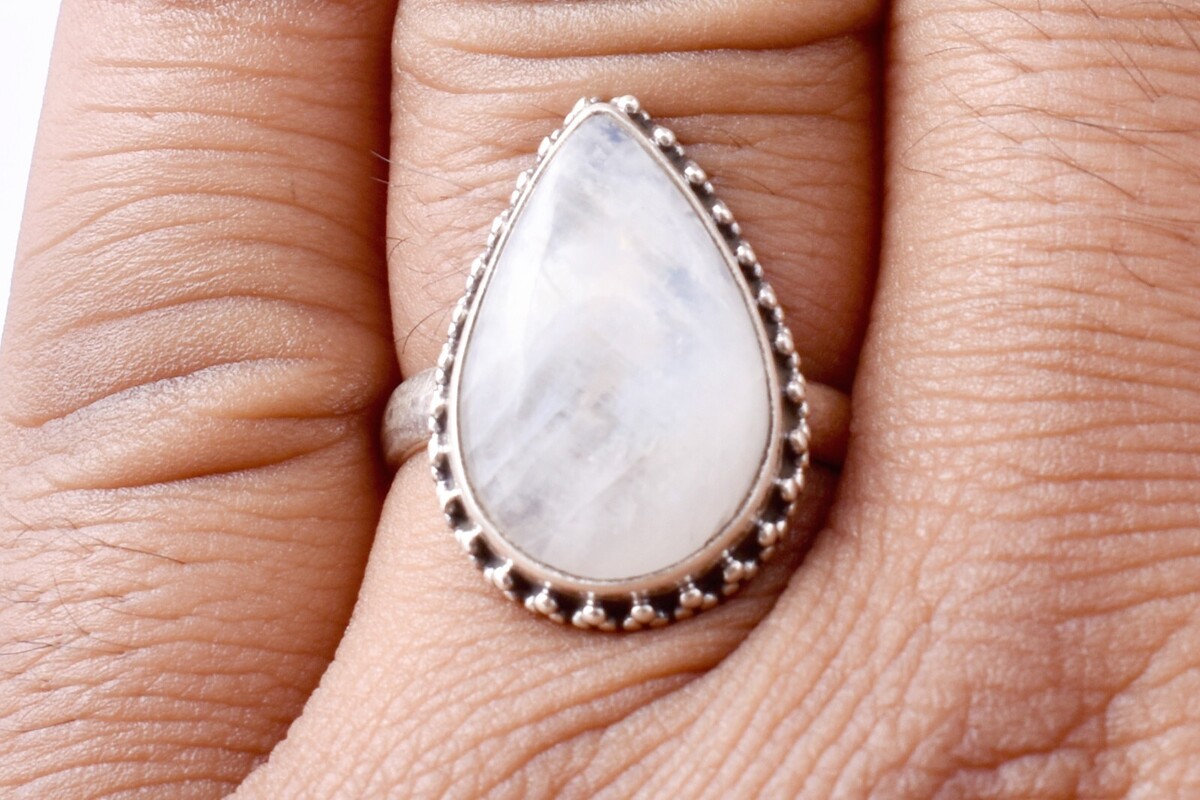 Anello da donna fatto a mano in argento sterling 925 con pietra di luna con...