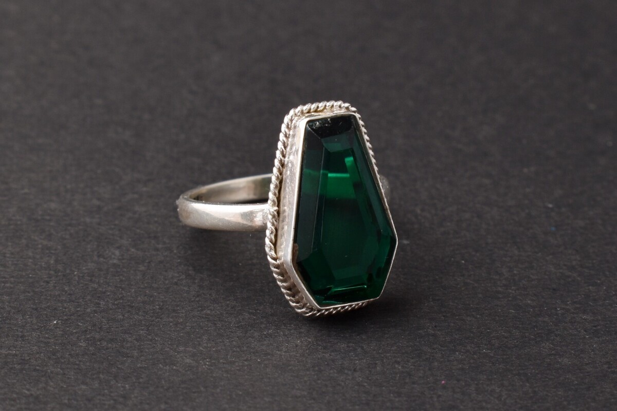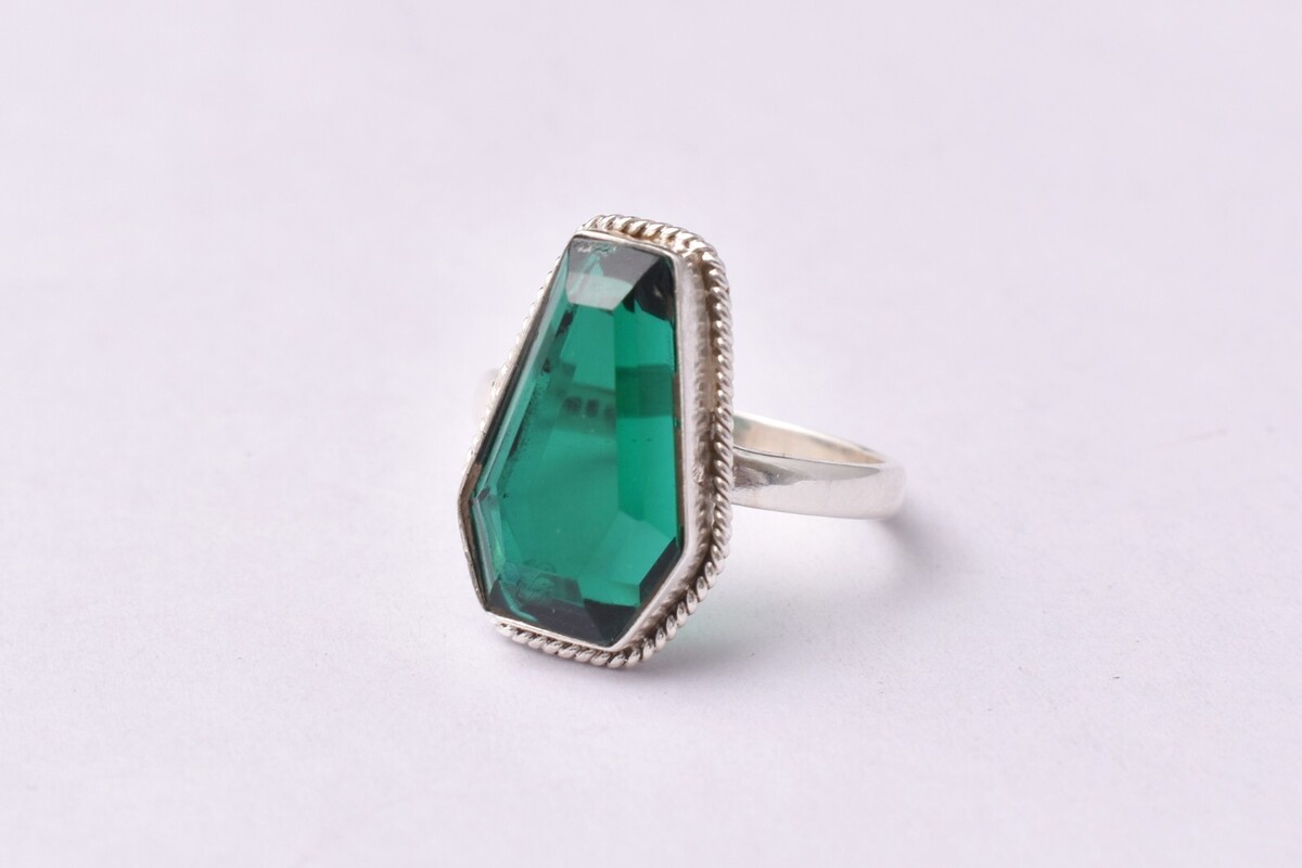 Anello da donna in argento sterling 925 con pietra di onice verde fatto a...