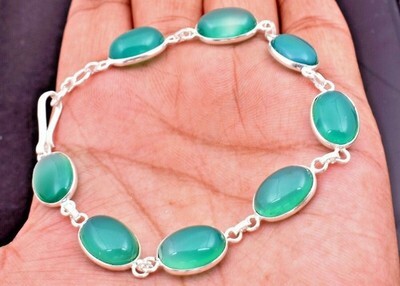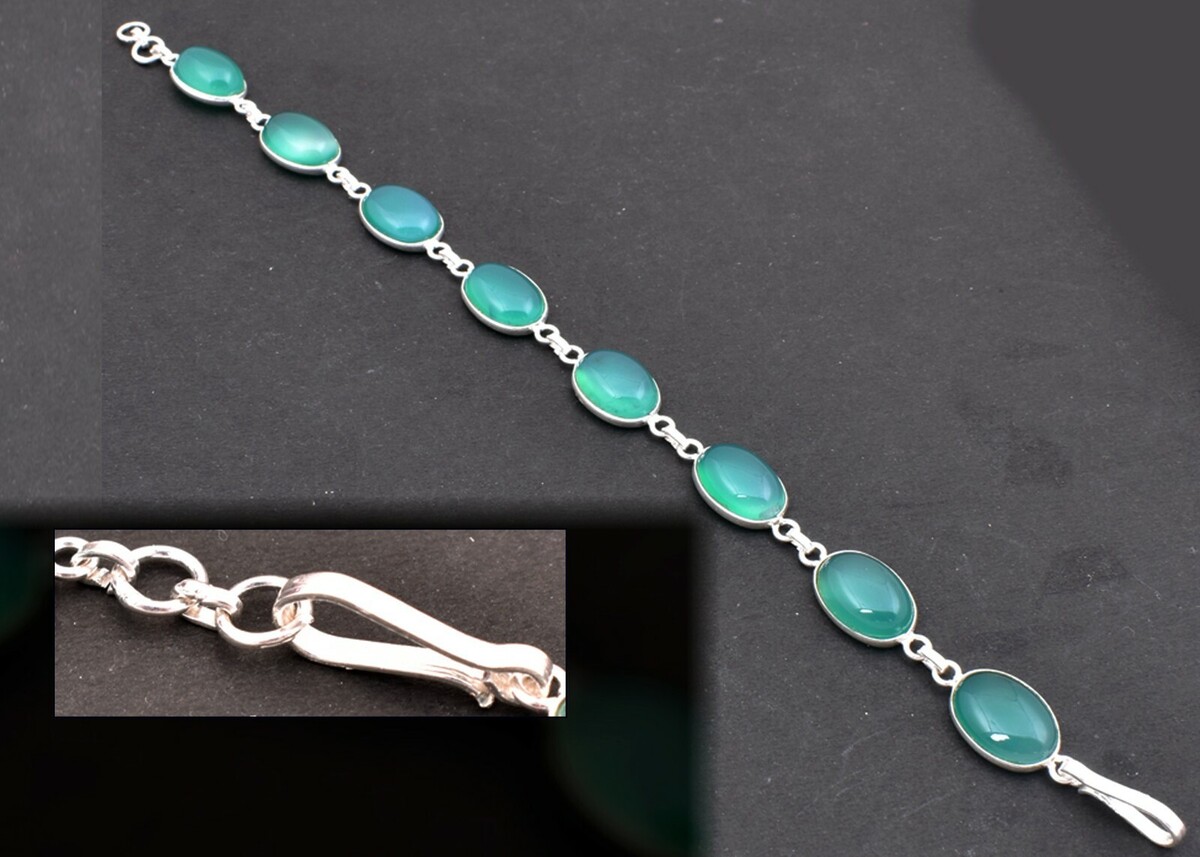Bracciale a maglie da donna in argento sterling con pietre preziose onice...