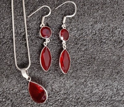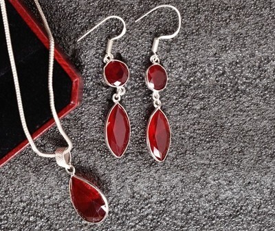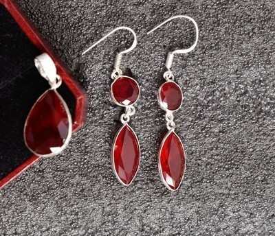 Boucles d'oreilles pendantes en argent sterling et quartz rubis, pierre...