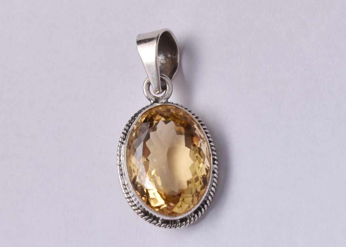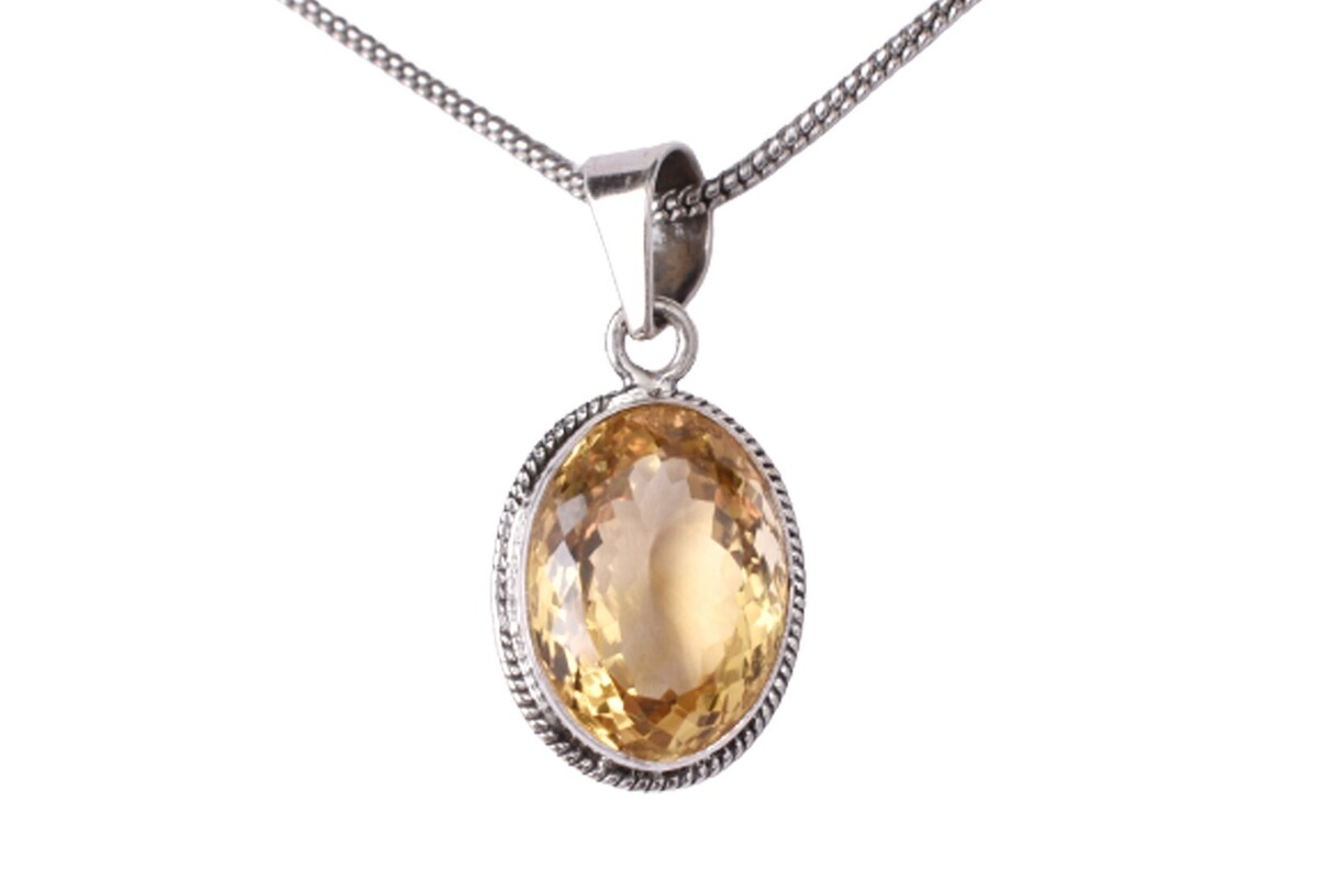 Beau collier pendentif en argent sterling et pierre citrine fait main au...