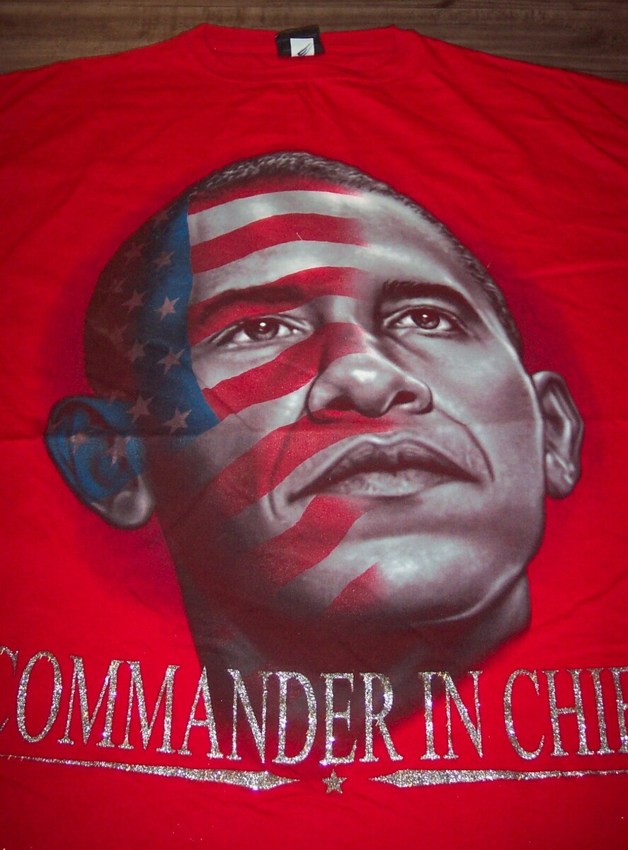 This is a President Barack Obama Commander and Chief T-shirt. It is a size 3XL, and it is NEW. It is 27 inches from armpit to armpit and 33 inches in length. The Sliver Print Sparkles and Looks Awesome. Combine auctions to save on shipping. AG