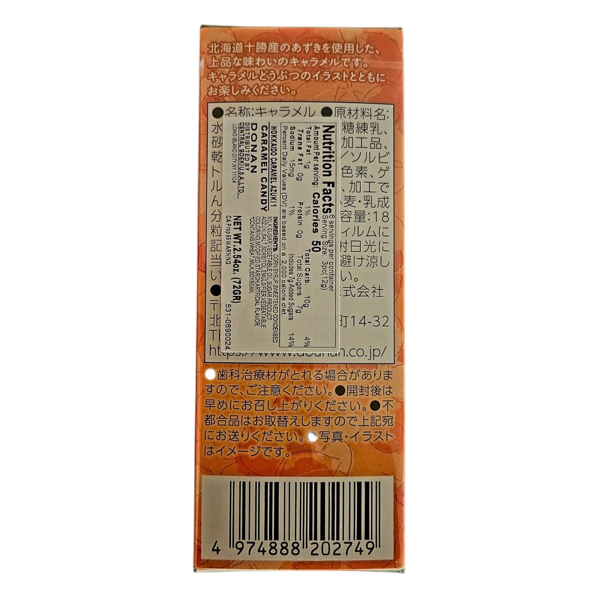 Dounan Hokkaido Japanese Azuki (Red Bean) Caramel Candy 18 Pieces(72g) - 6 Pack