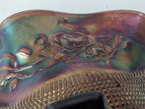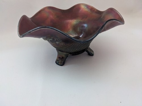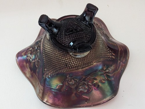 Northwood Amethyst Carnival Glass Fine Cut Roses Footed Candy Dish 7 x 3 Inch