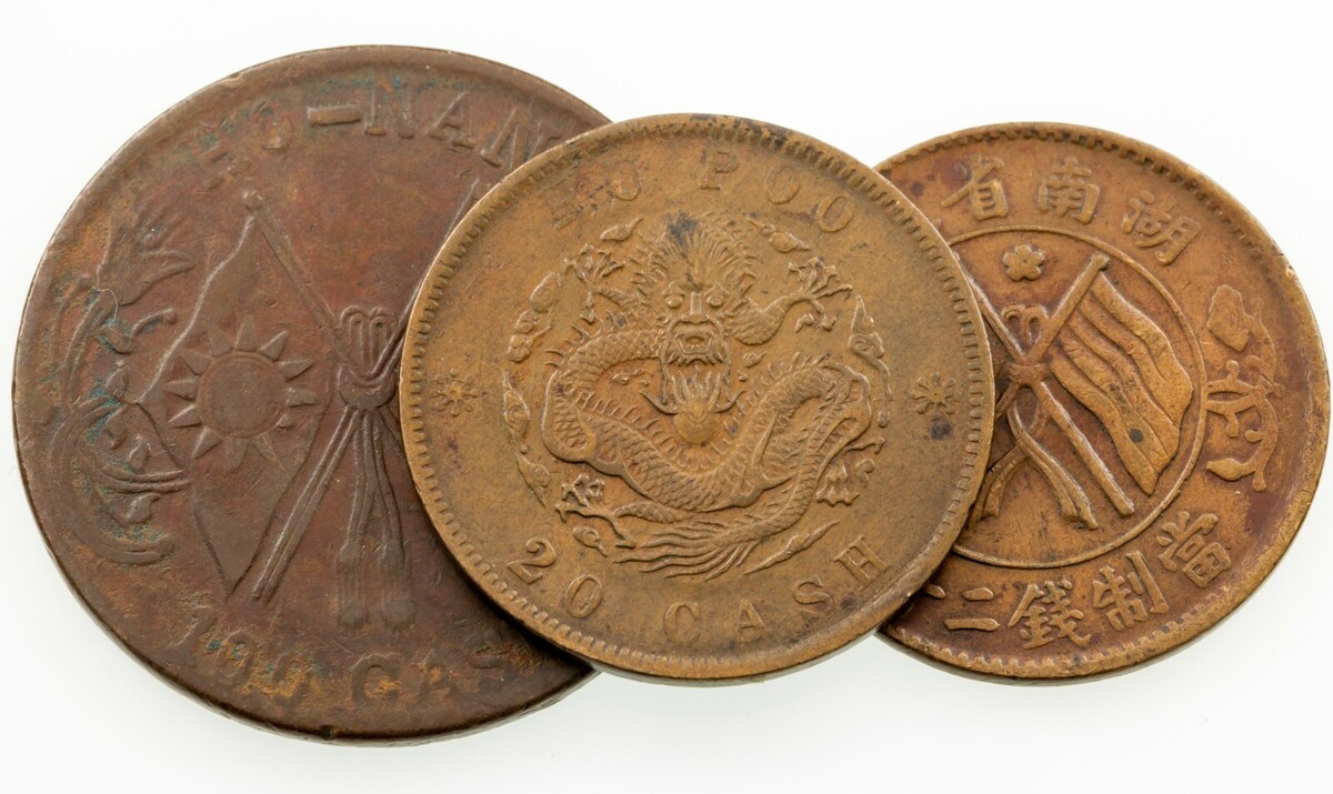 (1903-28) China, (2) 20 Cash (1) 100 Cash Coin Lot of 3 Y# 5, 395.1, 400.7