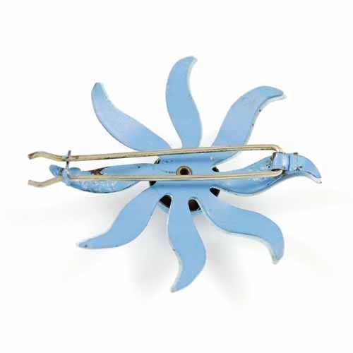 VTG 1960s Blue Enamel Flower Hair Barrette Mid Century Floral