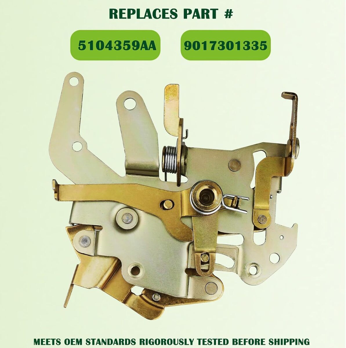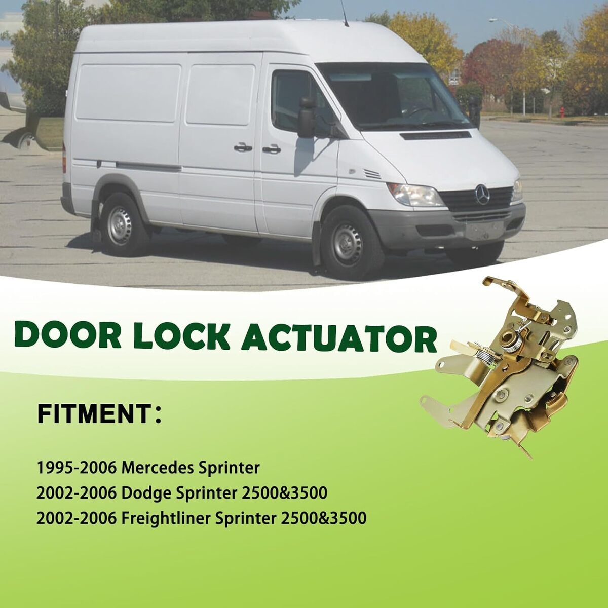REPLACEMENT PART NUMBER: 5104359AA 9017301335 COMPATIBLE WITH: The door latch assembly Compatible with 1995 1996 1997 1998 1999 2000 2001 2002 2003 2004 2005 2006 Mercedes Sprinter,2002 2003 2004 2005 2006 Dodge Sprinter 2500 3500,2002 2003 2004 2005 2006 Freightliner Sprinter 2500 3500,Please refer to the vehicle compatibility above to ensure proper part. FEATURES: This sliding door lock actuator has passed a number of safety tests to solve the problem of locking/unlocking the vehicle, help the vehicle return to normal operation, and ensure the stability of the quality and reliable performance of the door lock in the long-term use process. SERVICE LIFE EASY INSTALLATION: This right sliding door Latch Lock is not the real original parts, but it uses advanced technology and high-quality materials in line with oem standards, more effective extension of service life, directly replace the old door lock assy, easy to install can save you time and money. BUY WITH CONFIDENCE: 1-Year Warranty. If you have any questions or concerns about the power door latch actuator, please contact us by email and we will provide you with satisfactory service support.