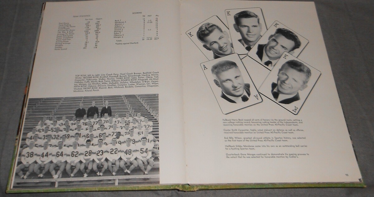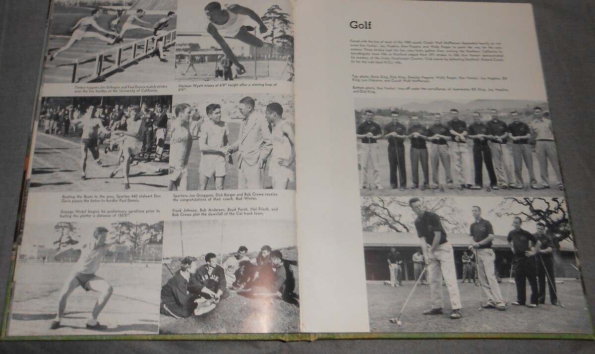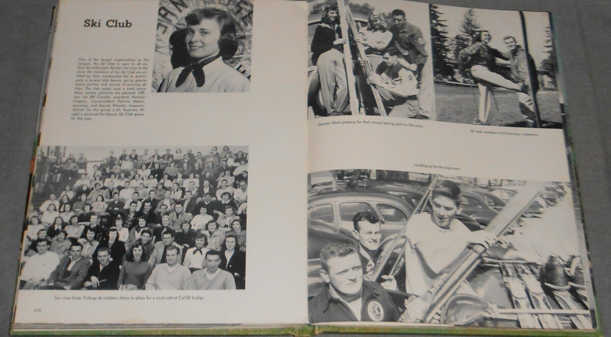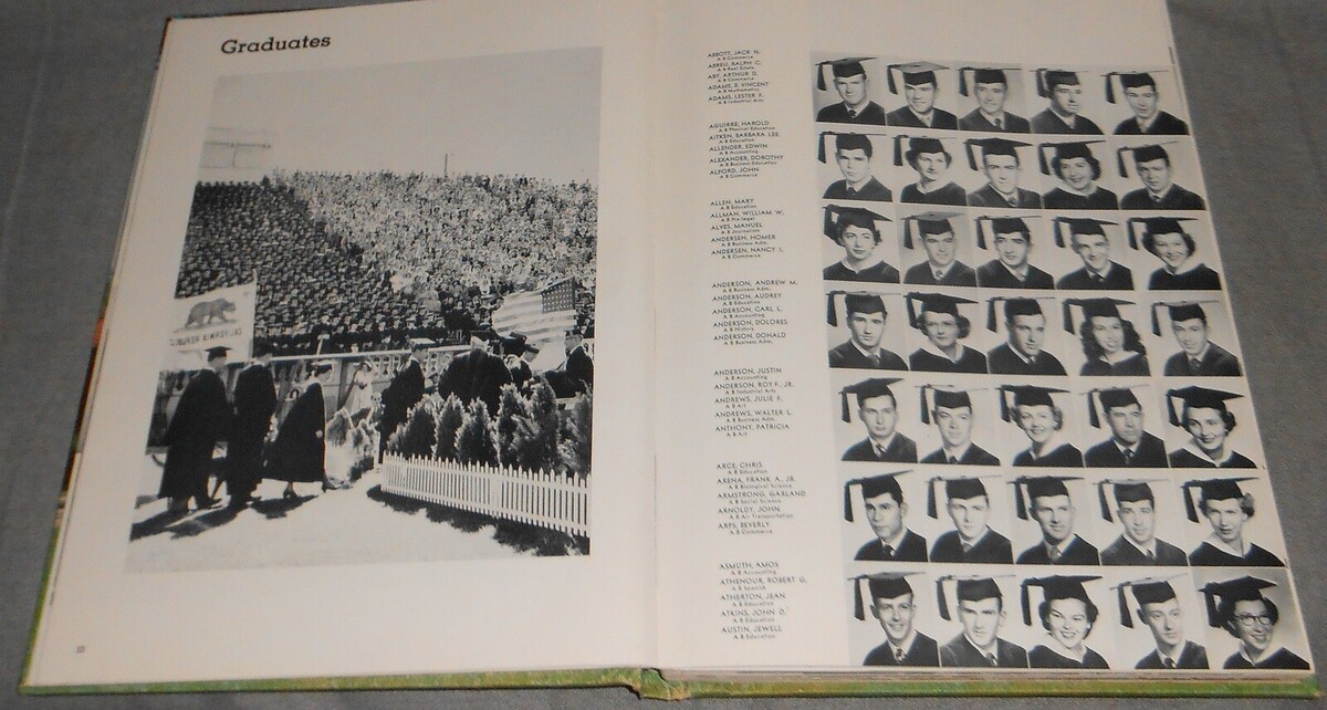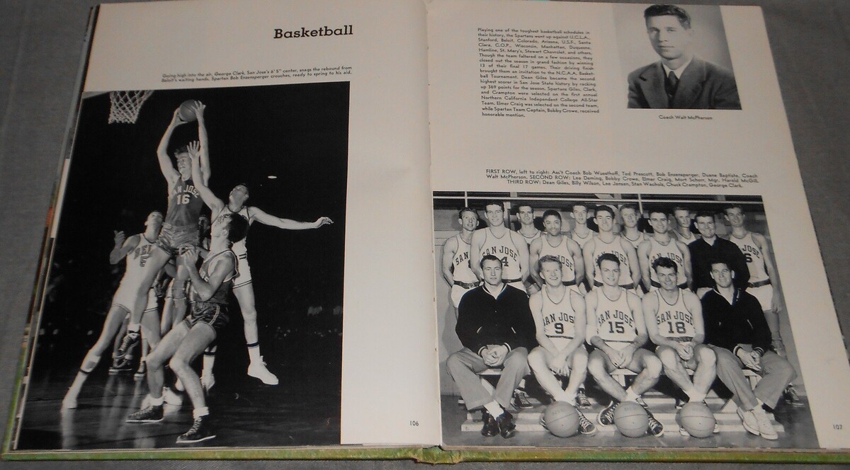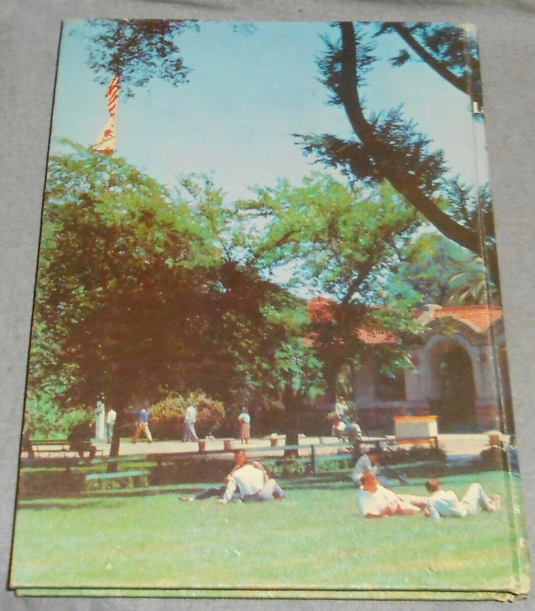 This is the Hardcover 1951 La Torre - San Jose State Yearbook. It has 288 pages with a lot of photos (B W) and some artwork (in color). It is intact and clean overall though the cover has normal wear - see photos - and some of the pages on the bottom have some minor and light yellowing stains mostly in the last 100 pages. All the pages are intact and there is no writing I can see except for the original owners name on the first blank page. Nice Santa Clara Valley Historical Memorabilia. This is one of many Historical Santa Clara County (now known as Silicon Valley) Items I will be listing and if you visit my store you can see them all in the Santa Clara County Historical Category.
