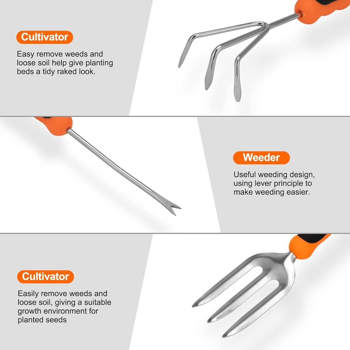 Stainless Steel Garden Tools with Tote & Non-Slip Handles - 7 Essential Tools