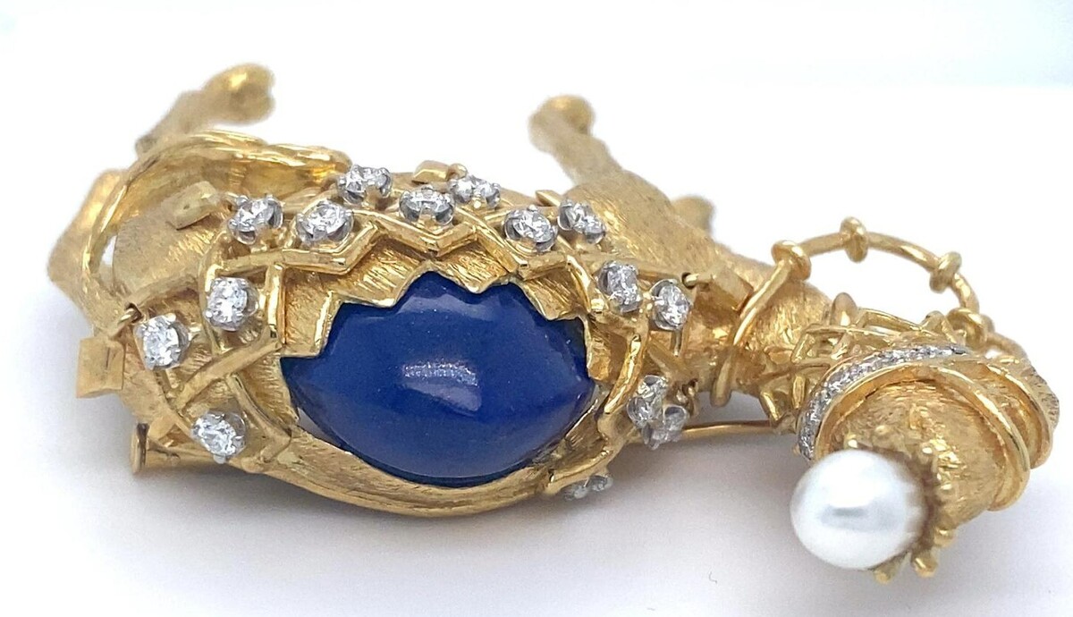 Tiffany Co. Schlumberger Dromedary Camel Brooch with Lapis, Pearl, Diamond