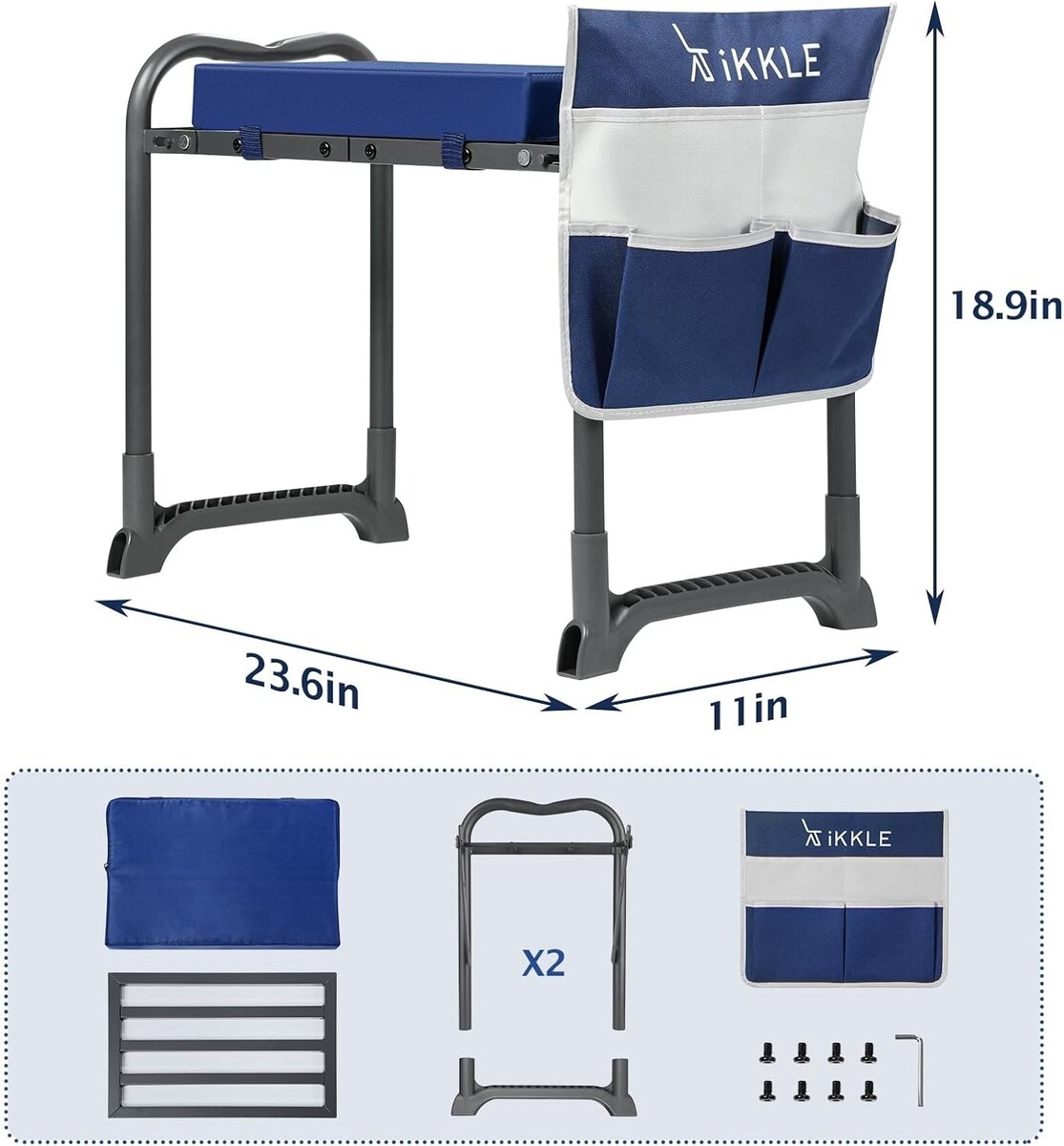 Set Includes: Garden Kneeler/Seat,Removable Kneeling Pad,Tool Pouches