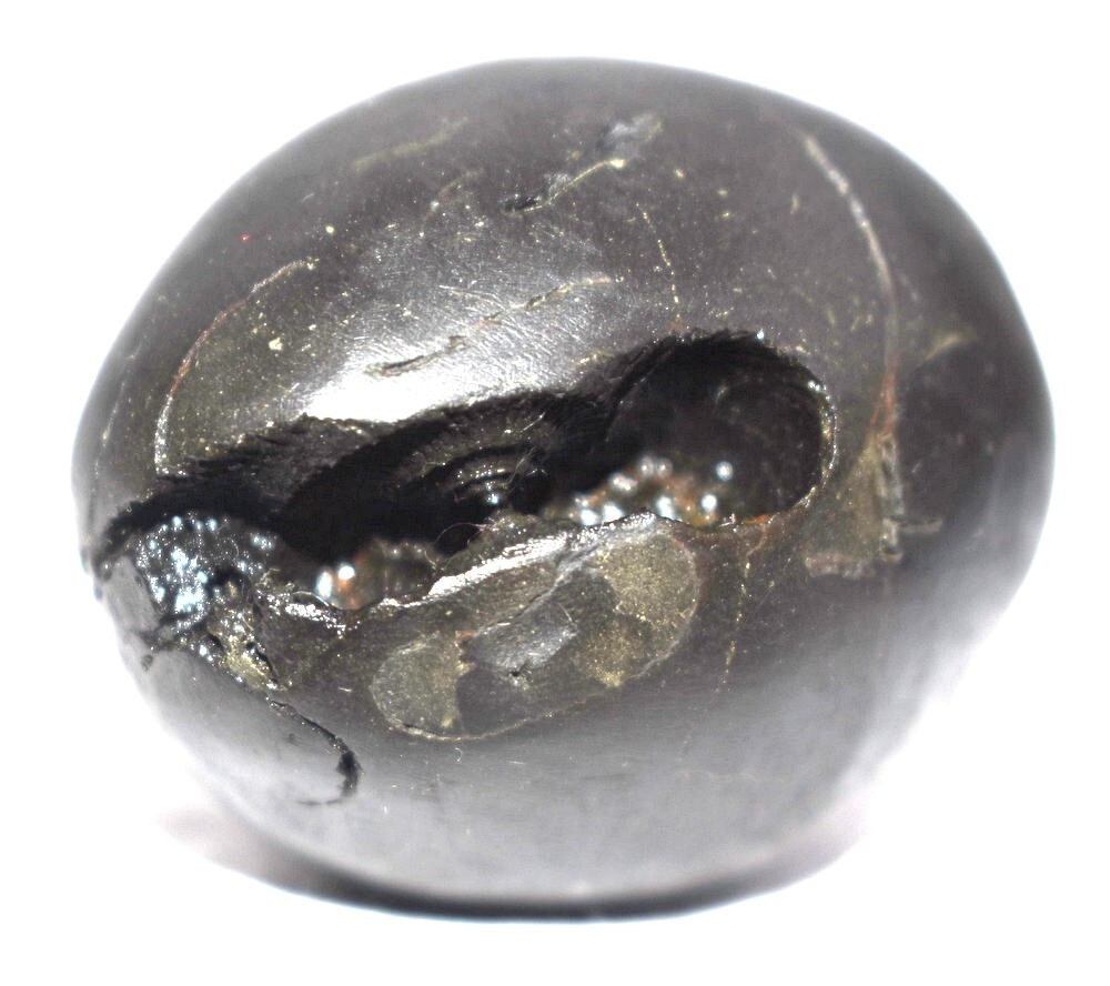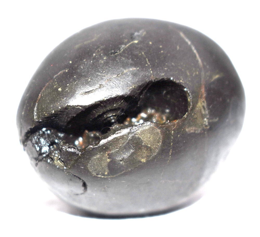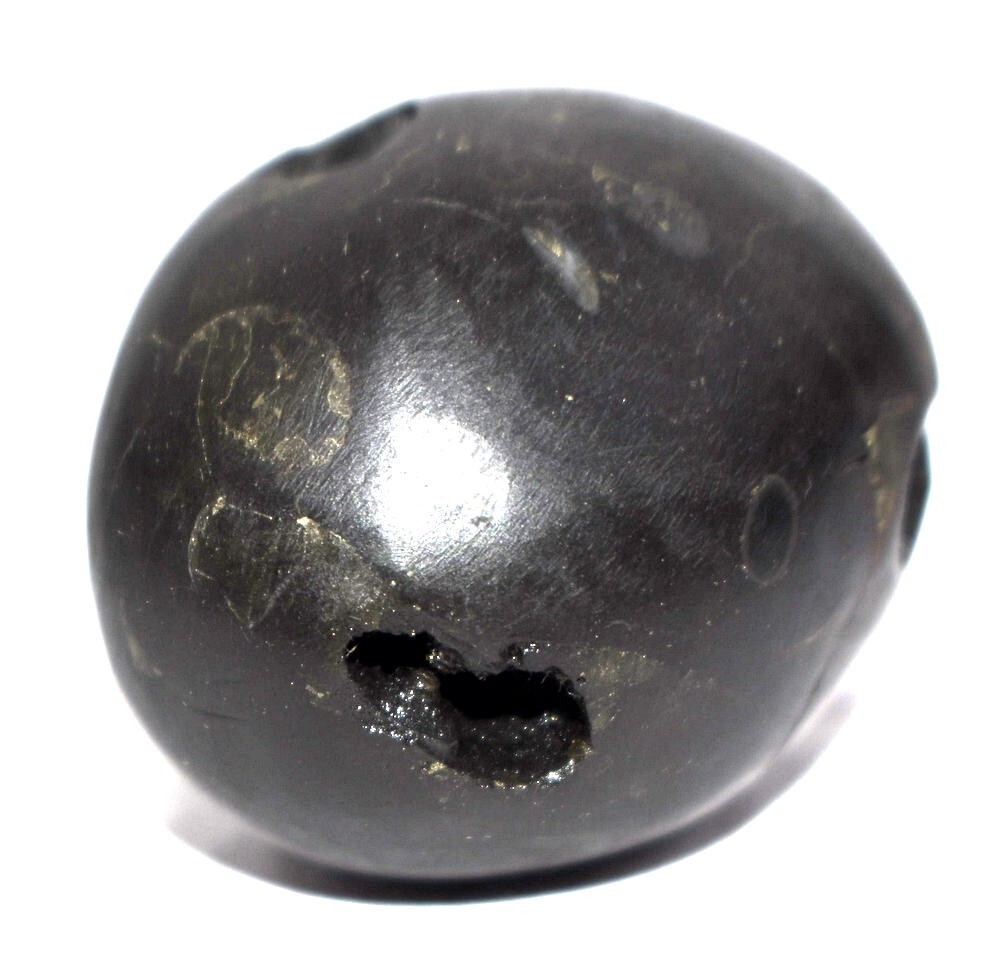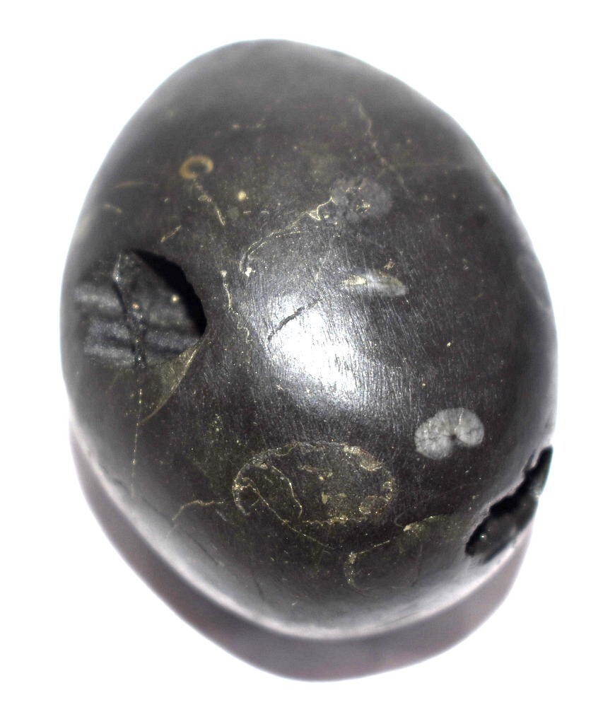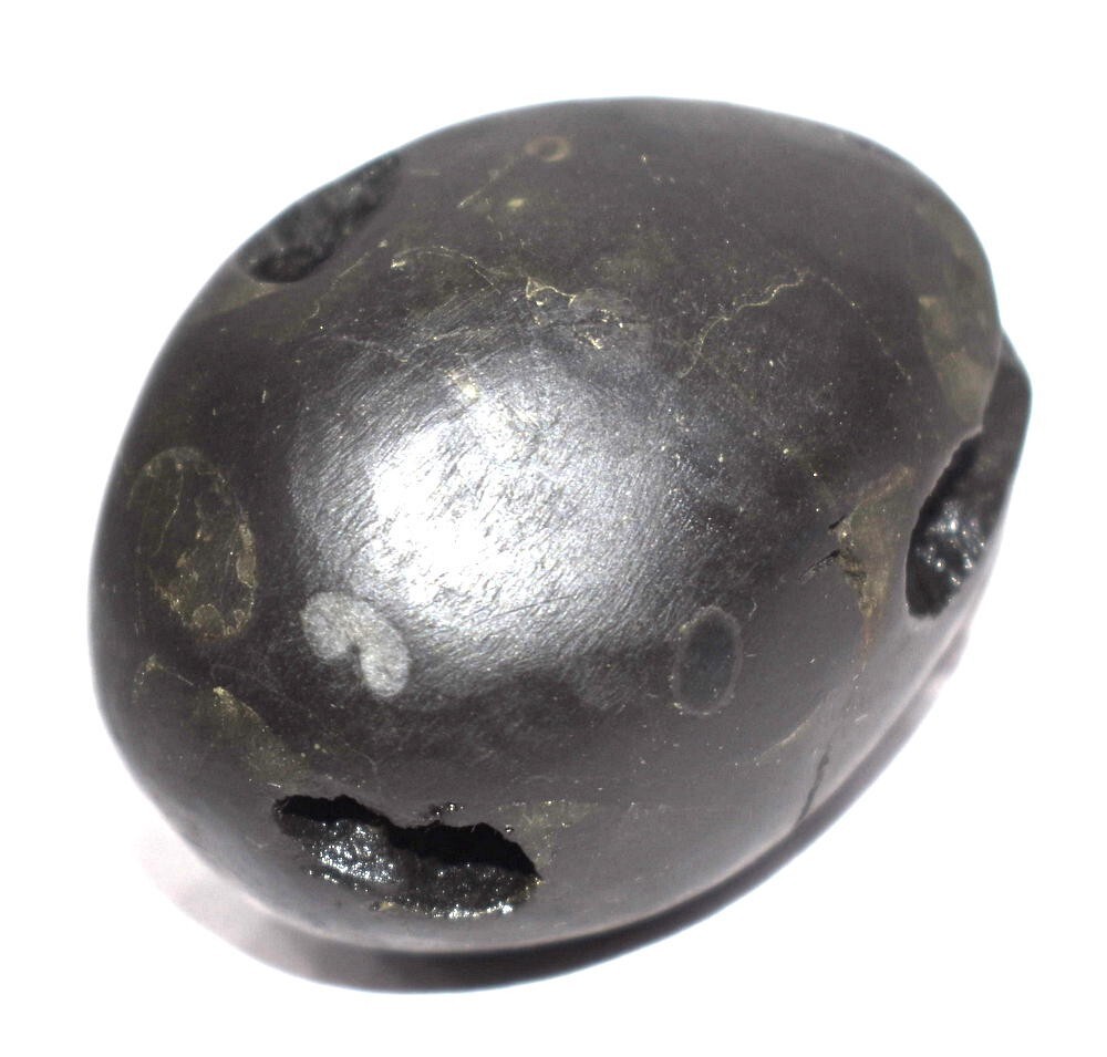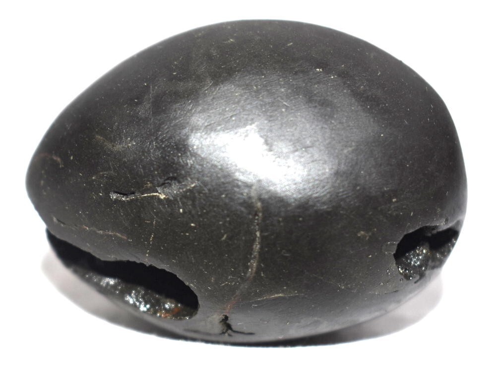 Smooth shiny black color oval shape body , 2 opening having 2 chakras in each (Toal 4 chakras) , Mark of Bow , Arrow , Quiver , With mark of Umbrella and chamara sign , Vanamala marks , mark of lotus , kundala , cow foot print , Stable, golden color spots ,.