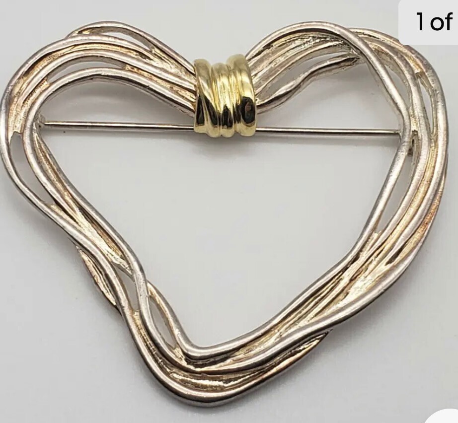VTG 80s Premier Designs Wings of Love Heart Brooch Silver Gold PD Pin Modernist