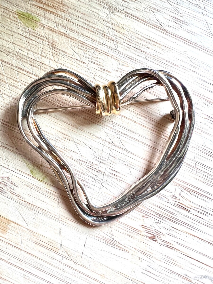 Premier Designs was a beloved 1980s?90s jewelry house known for romantic statement pieces with symbolic motifs. This mixed metal heart brooch exemplifies Modernist romantic styling popularized in department stores and fashion magazines of the era.