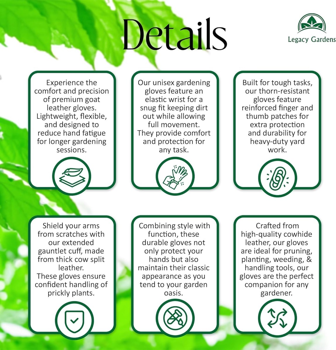 Long Cowhide Gauntlet Gardening Gloves, Reinforced & Eco-Friendly Protection