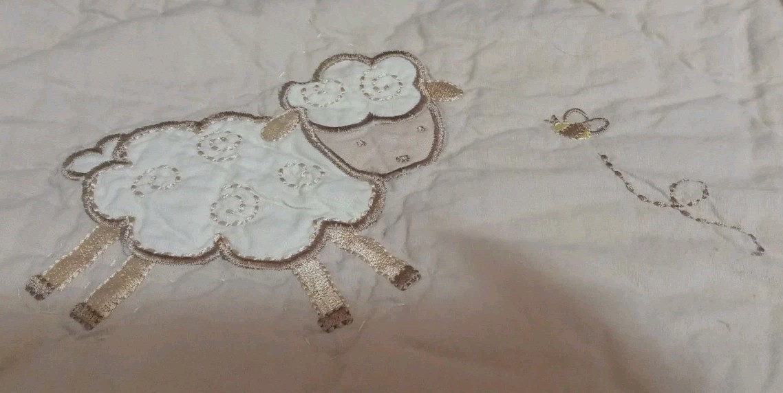 Geoffrey Toys R Us Beige Tan Sheep Lamb 34"x 43" Cotton Quilt Baby Blanket HTF