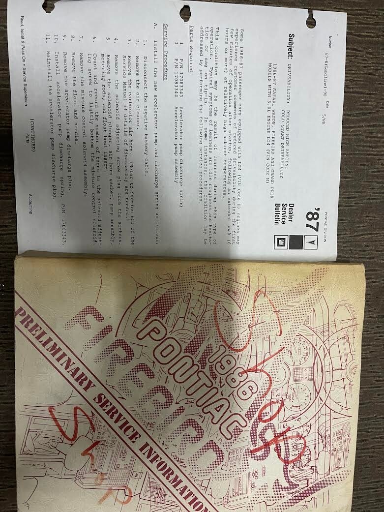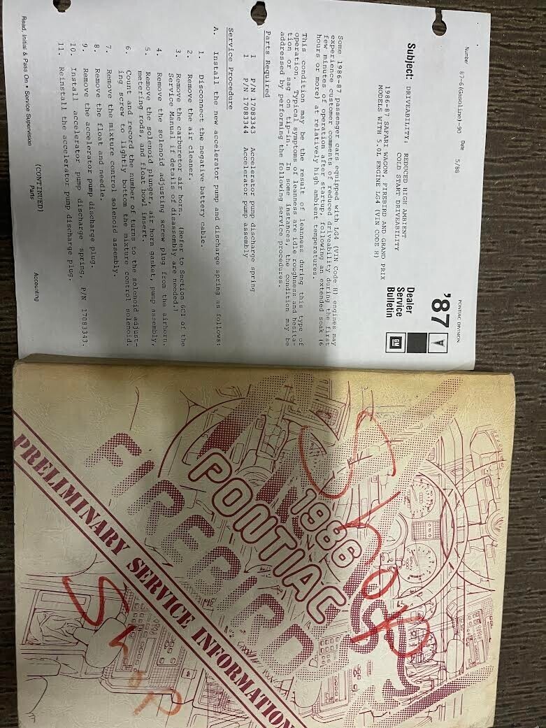 1986 Pontiac Firebird/Trans Am Preliminary Factory Service Manual e The Bulletin Page