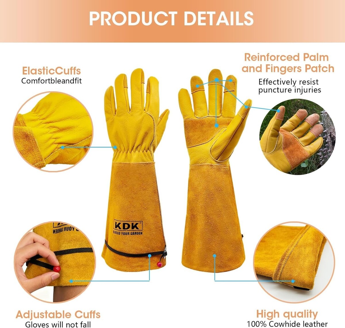 Extended Gauntlet Cowhide Gloves for Full Forearm Protection in Gardening Tasks