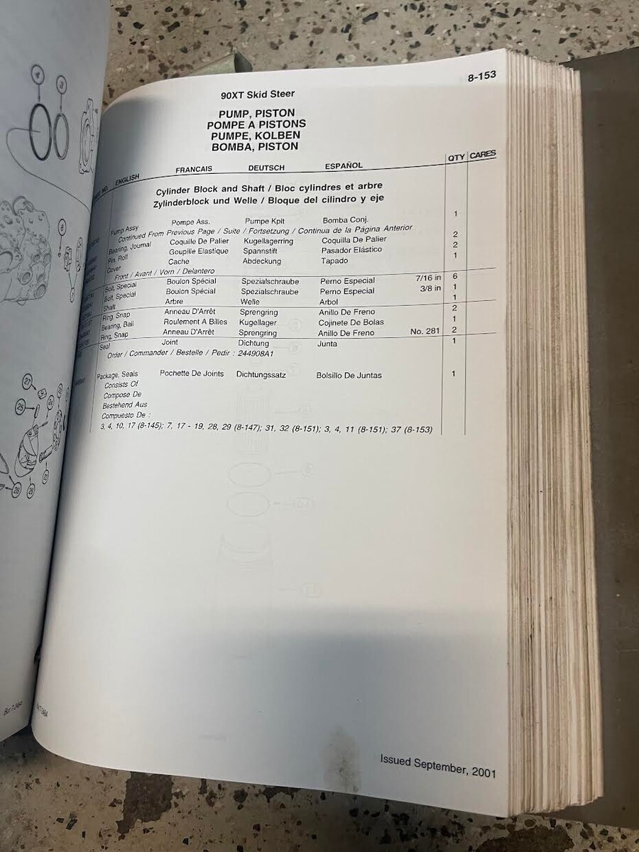 Custodia Skid Steer Loader 90 XT 90XT Parti List Catalogo BUR7-2464 OEM W Binde