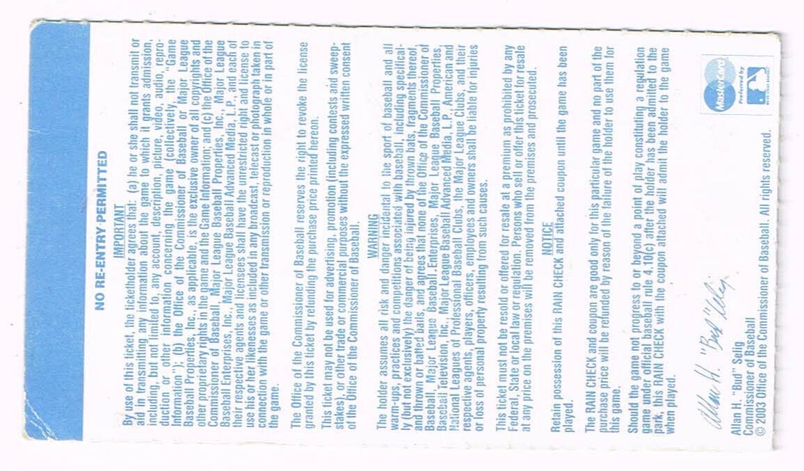 2003 ALDS Division Series Game 2 Season Ticket stub Twins @ Yankees Jeter Hit